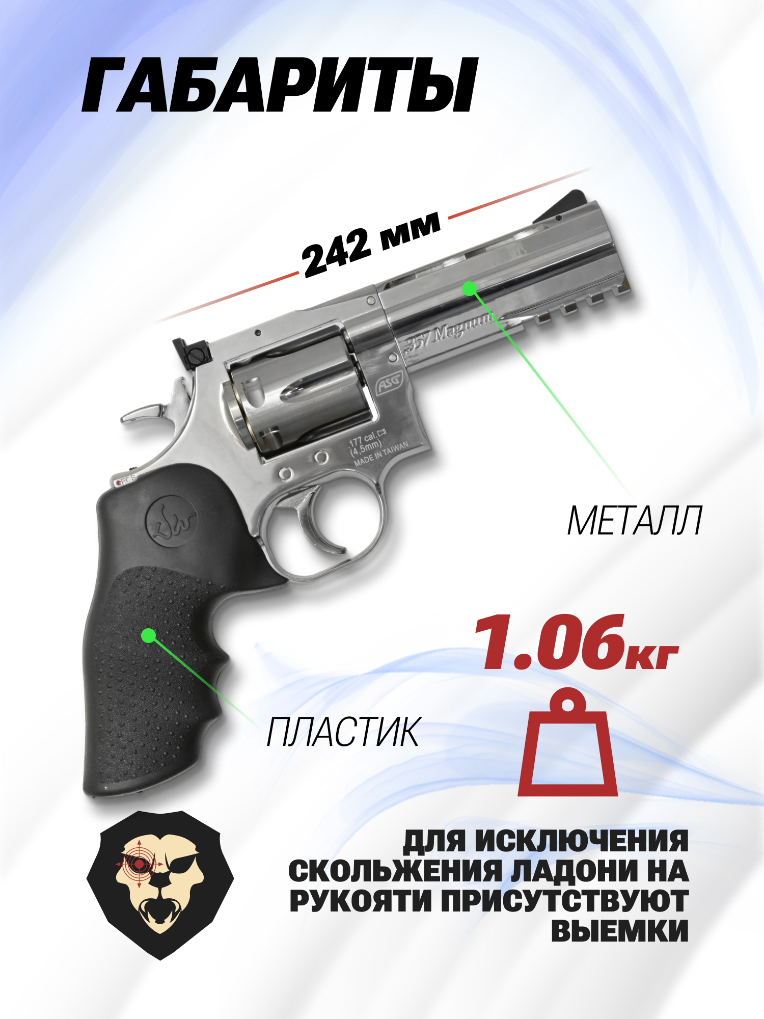 Продукция компании ASG заслуженно пользуется спросом среди любителей стрельбы из пневматики. Ассортимент фирмы включает богатый выбор надежных газобаллонных моделей. Пристального внимания заслуживают револьверы, рассчитанные на использование воланчиковых пуль.