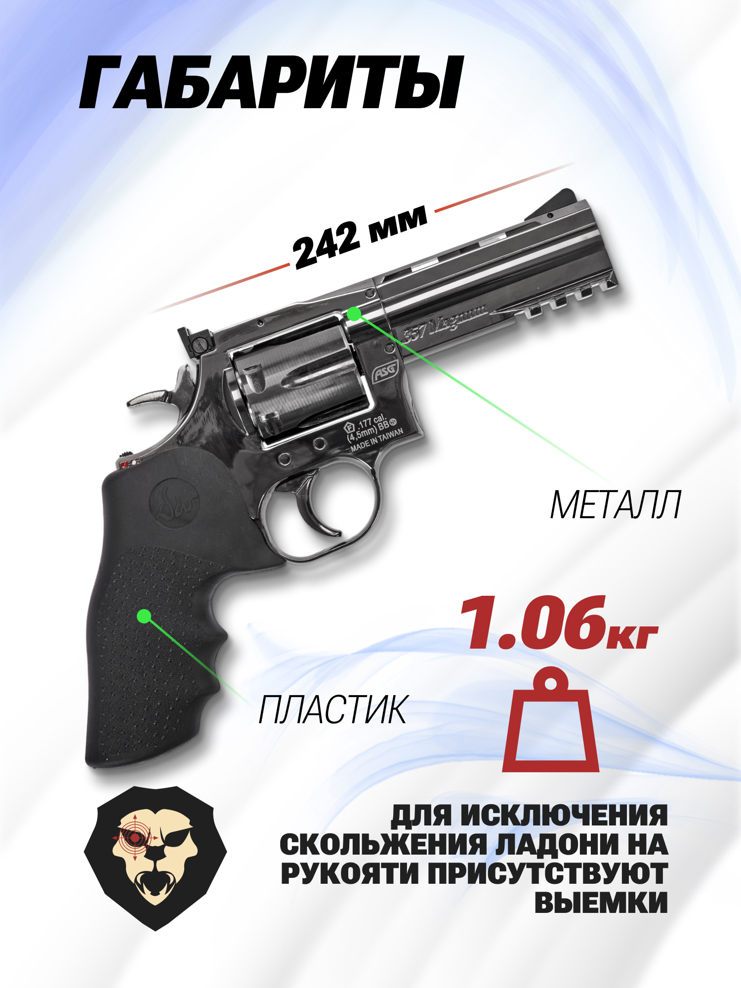 Компания ASG специализируется на создании высококачественной пневматики и предлагает широкий выбор изделий. К примеру, ассортимент включает линейку газобаллонных револьверов, которые приятно удивят проработкой деталей. Отличительная особенность оных заключается в вариативности исполнения, что дает подобрать конфигурацию по собственному усмотрению.