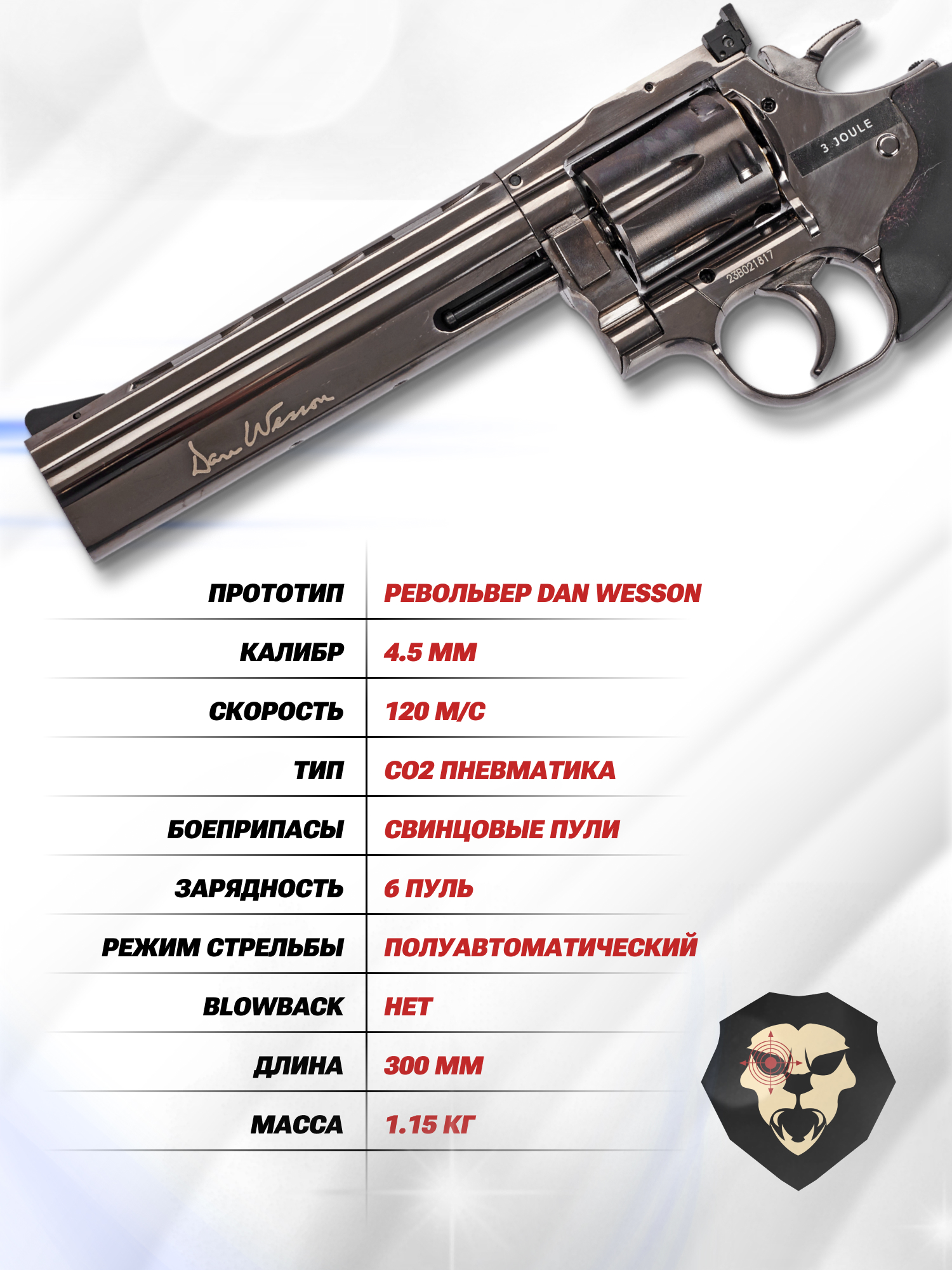 Ярким примером служит представленная компактная пневматическая версия револьвера Dan Wesson - модель воссоздает характерные черты указанного американского образца с длиной ствола 140 миллиметров. Обозреваемый вариант сохранил конструктивные особенности прототипа, популярного среди сотрудников спецслужб и гражданских владельцев в США. Полная длина 30 сантиметров делает устройство компактным и оптимальным для тренировок и комфортной транспортировки.
