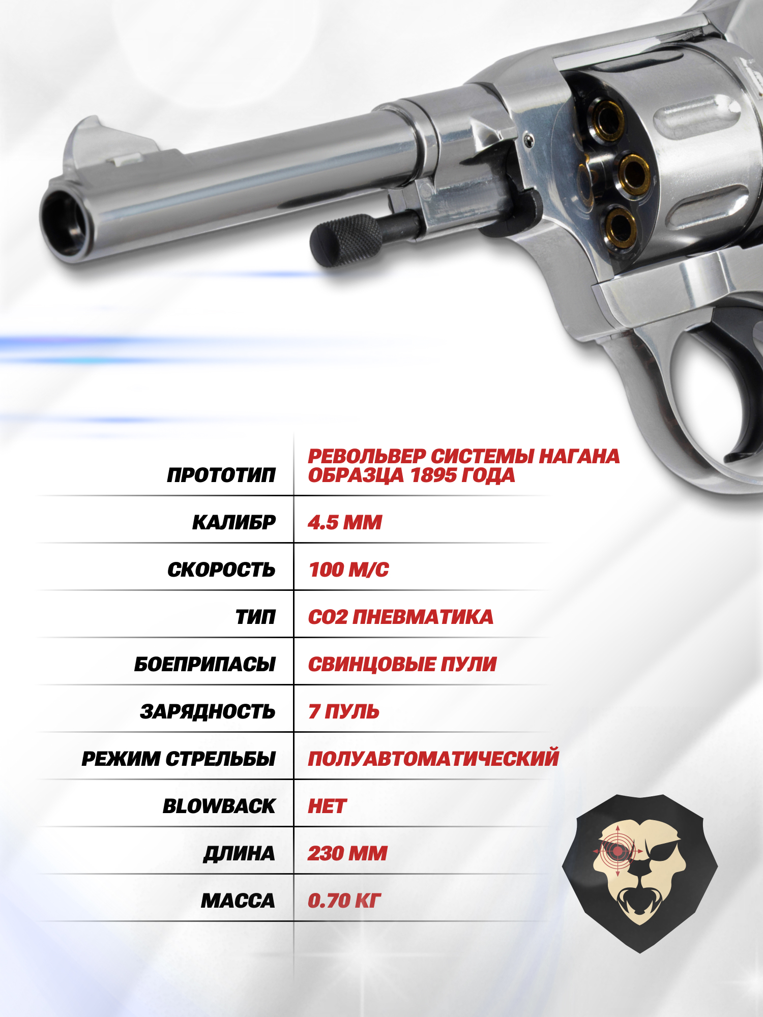 Пневматический револьвер Borner NGT-P 4.5 мм (silver, Наган, пулевой) купить в интернет-магазине Popadiv10.