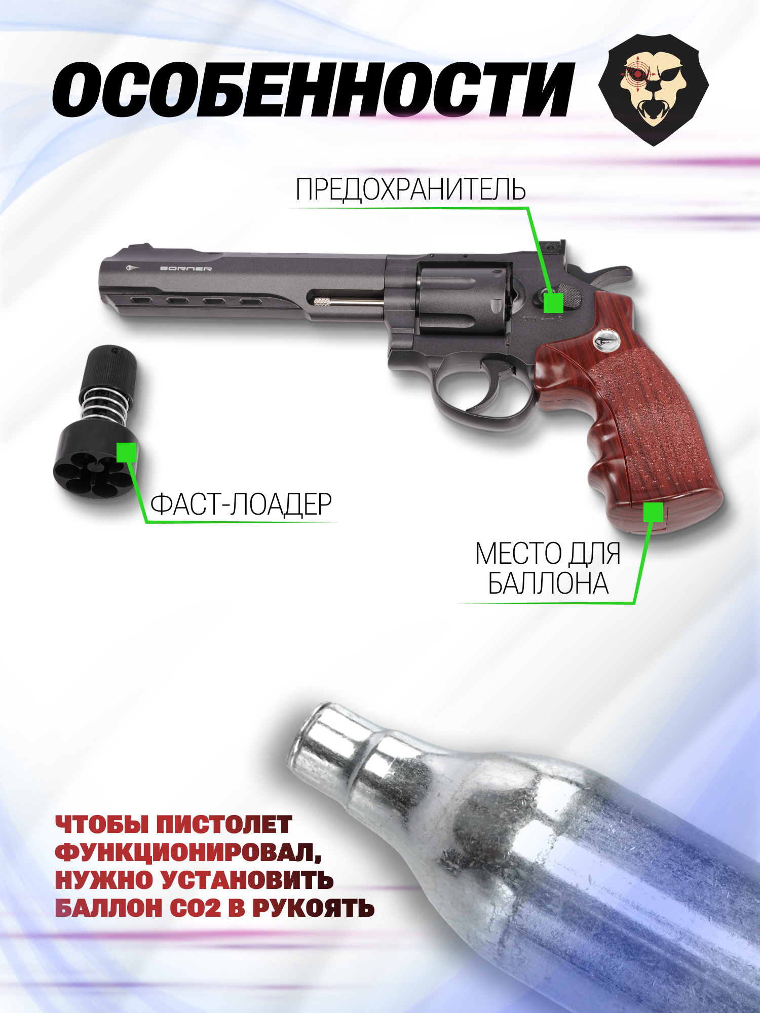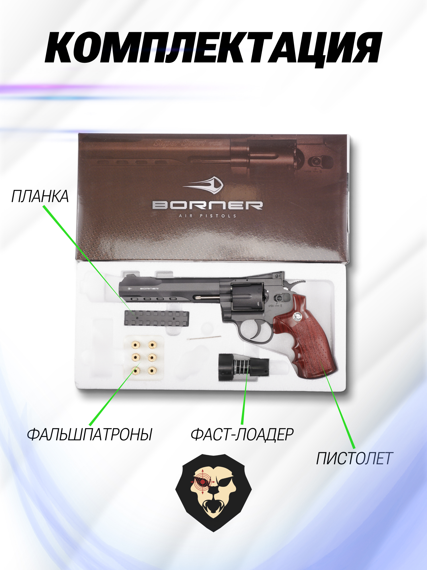Американский производитель Borner завоевал популярность среди любителей пневматического оружия России за счет обоснованной ценовой политики в отношении своих изделий. Изготовленная пневматика мощностью до 3 Дж, что соответствует требованиям законодательства. Для того чтобы приобрести револьвер, не требуется специальной лицензии.