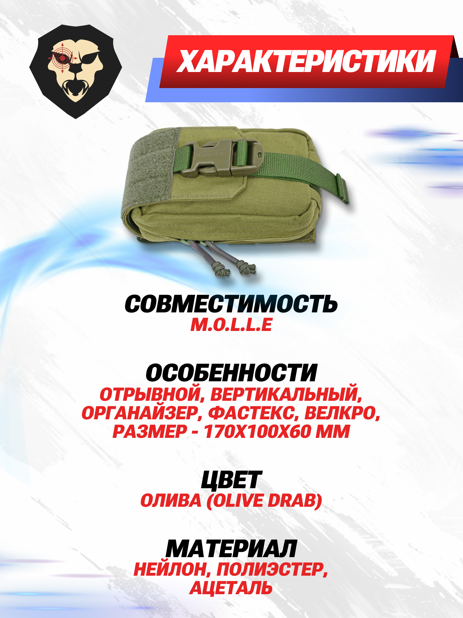Информация о товаре "Подсумок медицинский Wartech Аим (UP-106-OD, олива, отрывной)" носит ознакомительный характер, и не является публичной офертой, определяемой положениями Статьи 437 Гражданского кодекса Российской Федерации, характеристики, внешний вид, цвет и комплектация могут быть изменены производителем без уведомления.