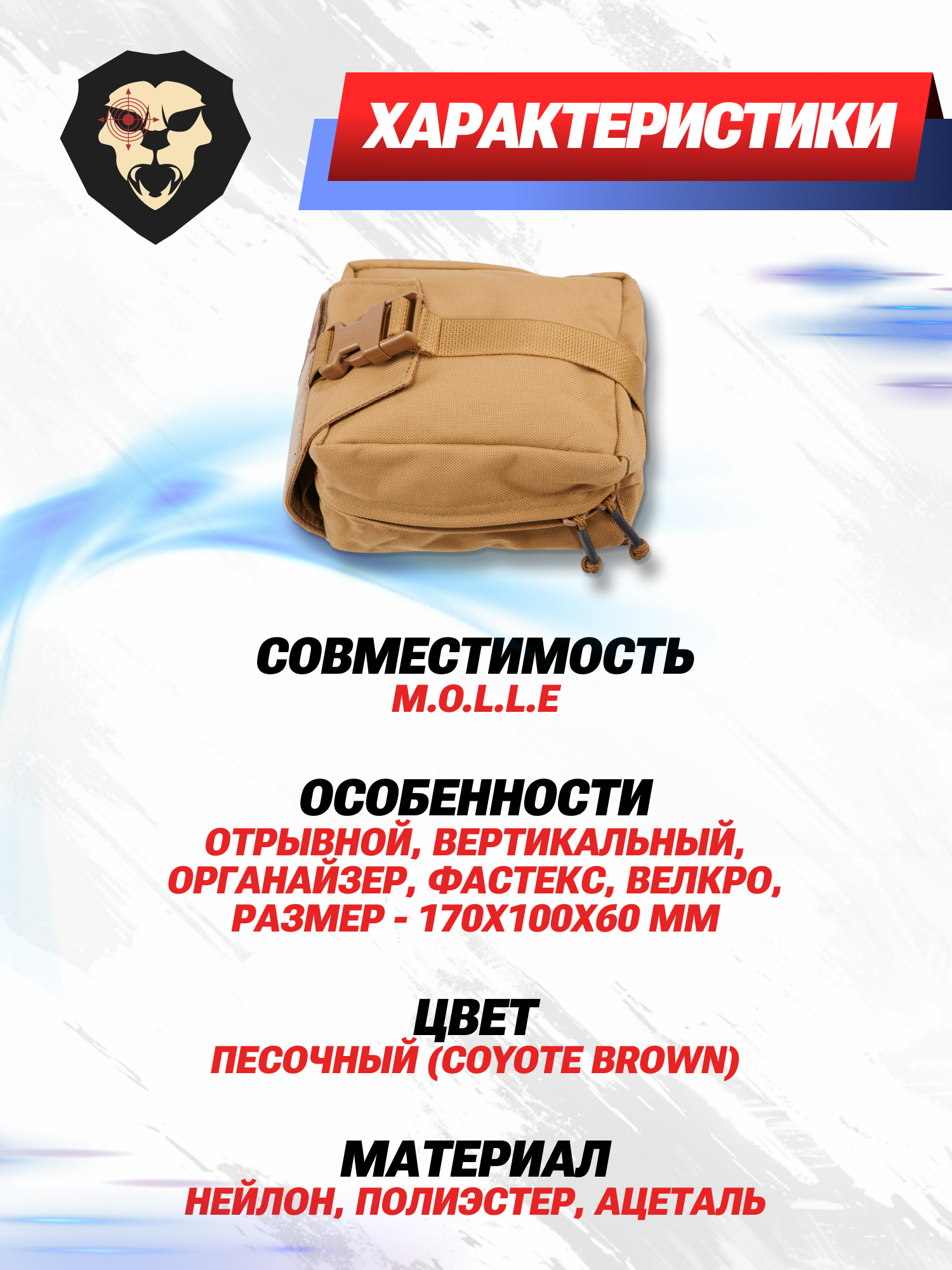 Информация о товаре "Подсумок медицинский Wartech Лекарь (отрывной, койот, UP-103-CB)" носит ознакомительный характер, и не является публичной офертой, определяемой положениями Статьи 437 Гражданского кодекса Российской Федерации, характеристики, внешний вид, цвет и комплектация могут быть изменены производителем без уведомления.