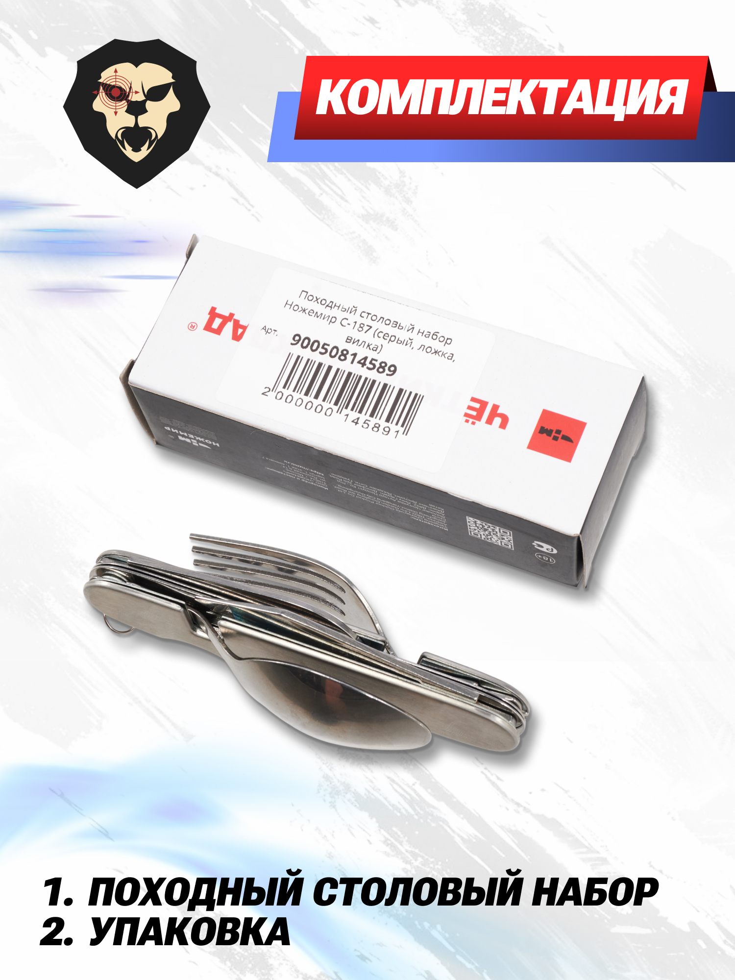 Походный столовый набор Ножемир C-187 (серый, ложка, вилка) купить в интернет-магазине Popadiv10.
