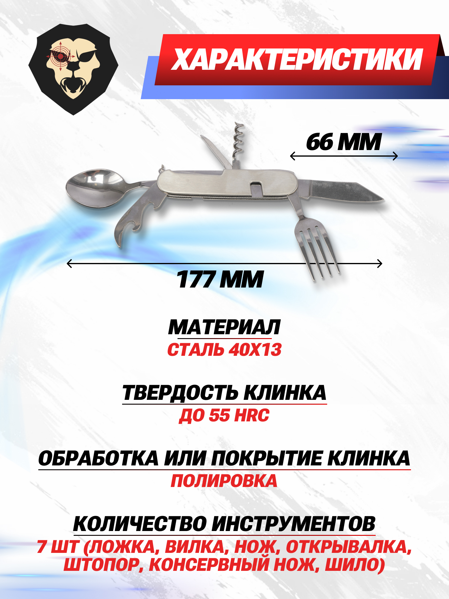 | Набор инструментов | Ложка, вилка, нож, открывашка, штопор, шило |