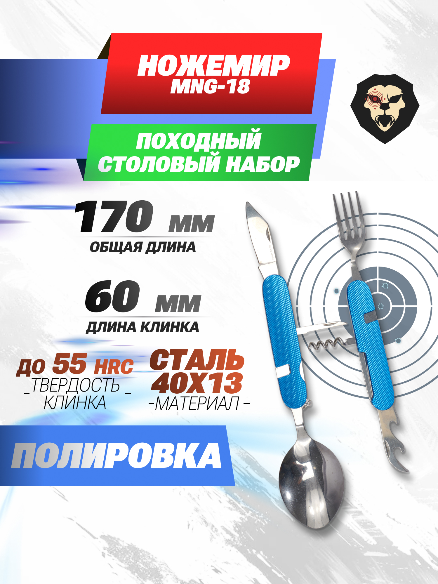 Походный столовый набор Ножемир MNG-18 (синий, ложка, вилка) купить в интернет-магазине Popadiv10.