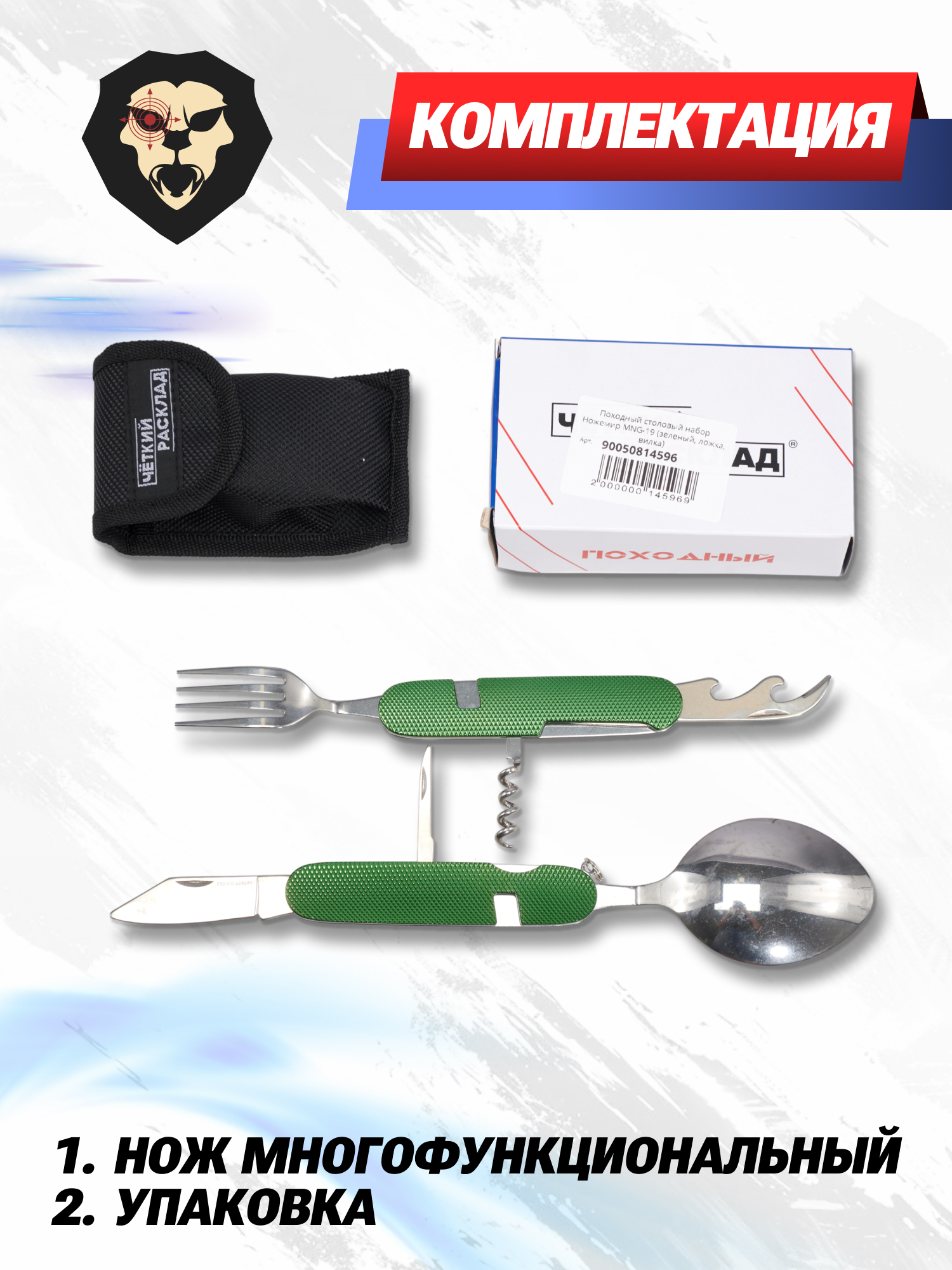 Артикул производителя MNG-19 Походный столовый набор Ножемир MNG-19 (зеленый, ложка, вилка) по низкой цене 672 руб. Модель со штрихкодом производителя Вы можете оплатить наложенным платежем с доставкой или в отделении транспортной компании (ПЭК, СДЭК, Boxberry). Ваш заказ со штрихкодом 2000000145969 забрать на почте с оплатой при получении в любой части Российской Федерации.