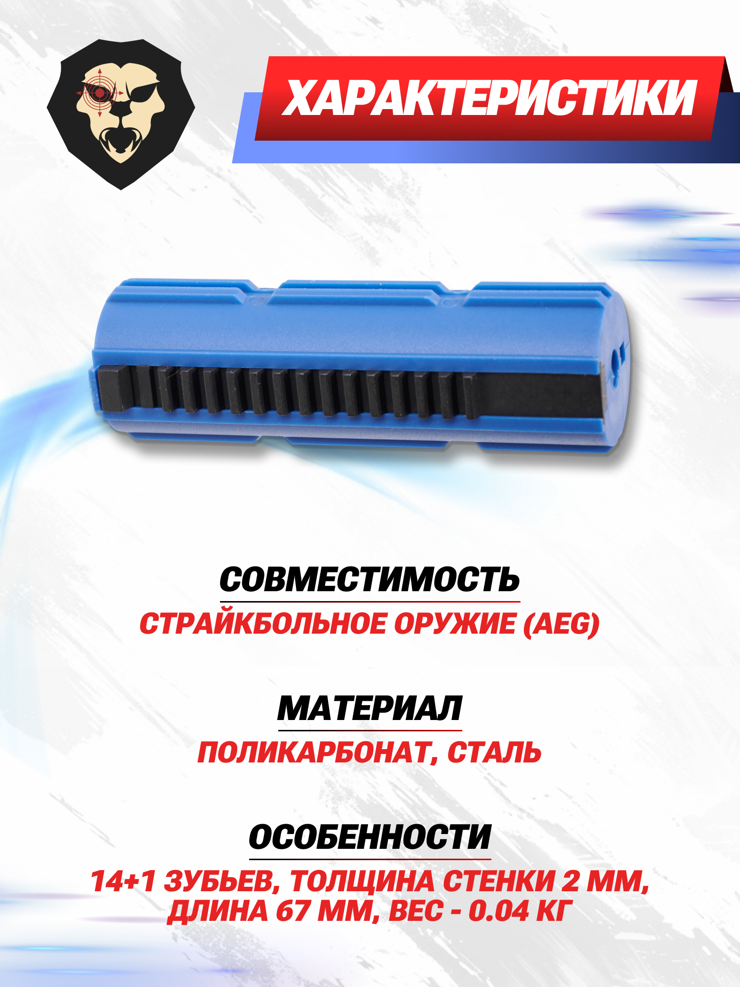 Соответственно поршень не будет отбирать лишнюю энергию на взведение, но в то же время выдержит нагрузку от усиленной пружины. Производитель рекомендует использовать деталь в сборках, рассчитанных на извлечение скорости в 140-170 метров в секунду.