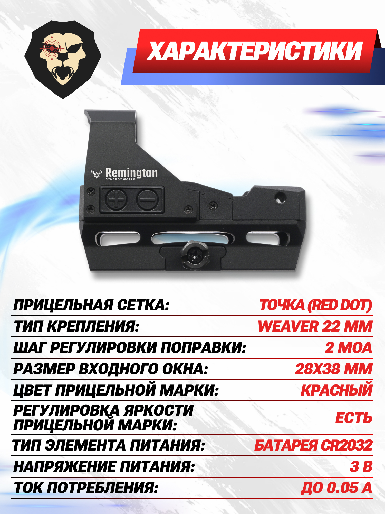 Информация о товаре "Коллиматорный прицел Remington Strike 1x28x38 (Weaver)" носит ознакомительный характер, и не является публичной офертой, определяемой положениями Статьи 437 Гражданского кодекса Российской Федерации, характеристики, внешний вид, цвет и комплектация могут быть изменены производителем без уведомления.