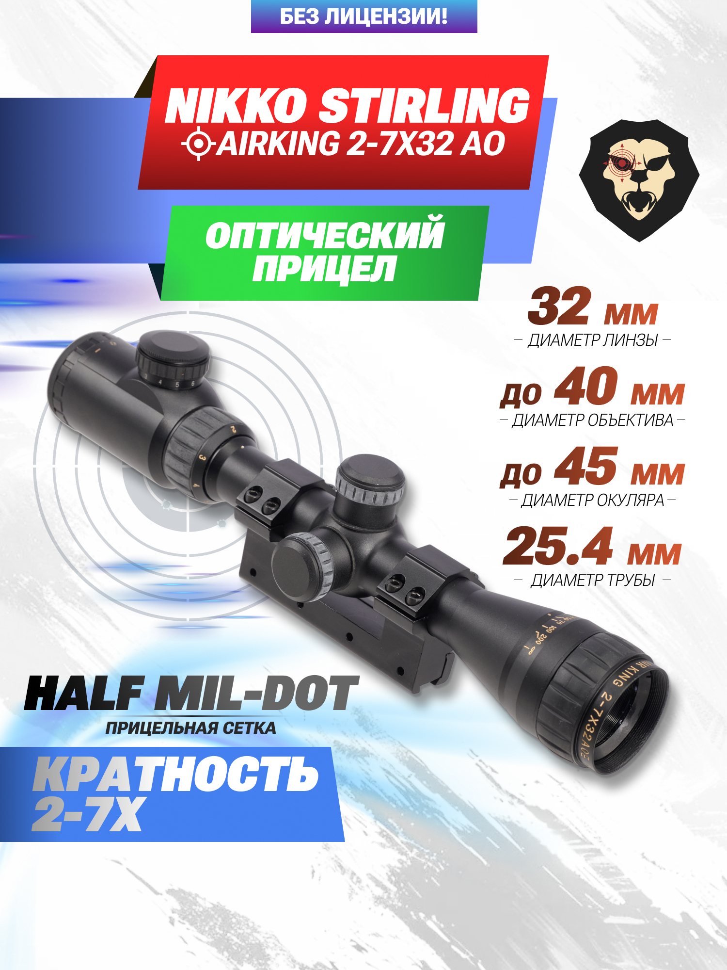 Оптический прицел Nikko Stirling Airking 2-7x32 АО (25.4 мм, Ластохвост, HMD, подсветка) купить в интернет-магазине Popadiv10.