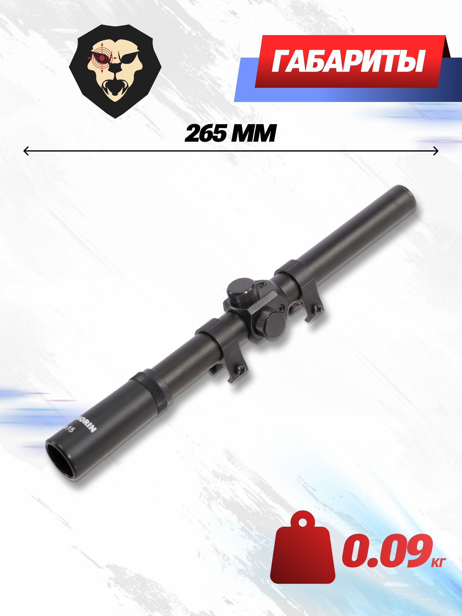Рассматриваемый оптический прицел Норин 4х15 может устанавливаться на усиленные пневматические винтовки с дульной энергией выстрела 7.5 Джоулей. Такая устойчивость к нагрузкам обусловлена зафиксированным положением оптических линз, а также использованием алюминия в качестве материала изготовления корпуса устройства. Кроме прочего, применение такого металла позволило достичь комфортной для пользователя массы не большее 100 грамм при габарите прибора 265 миллиметров.