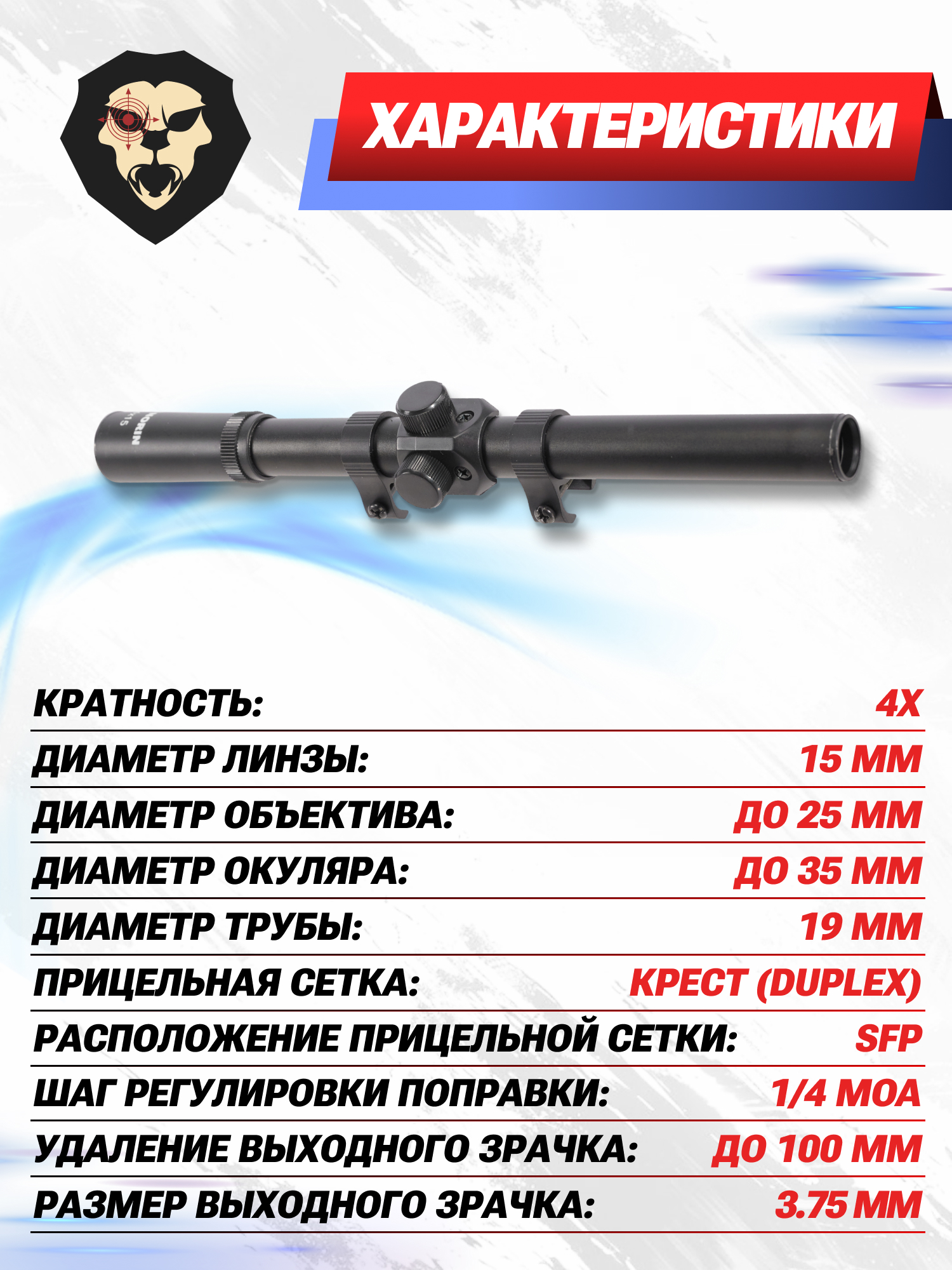 | Диаметр трубы прицела | 19 мм |