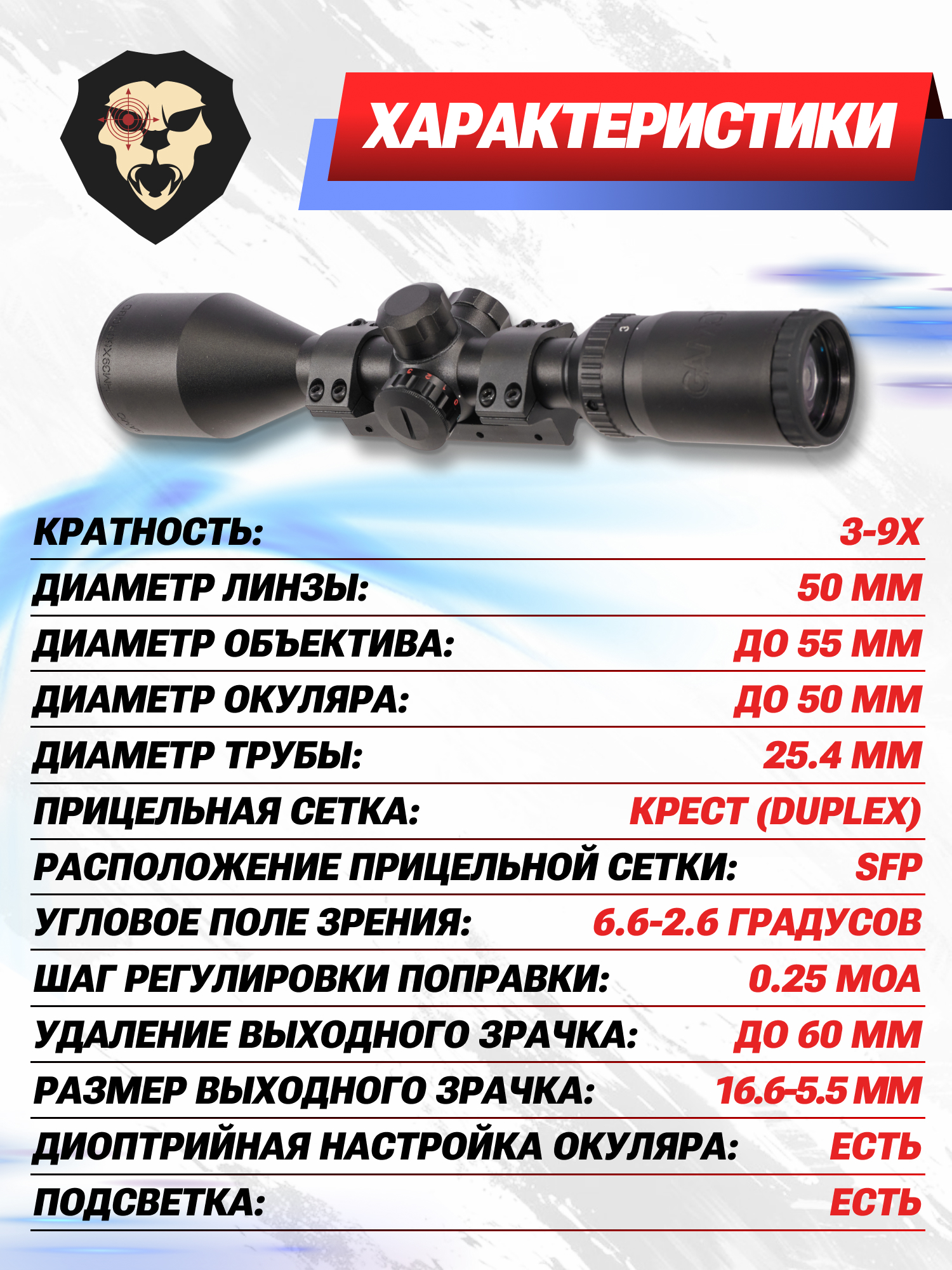 | Диаметр трубы прицела | 25.4 мм |