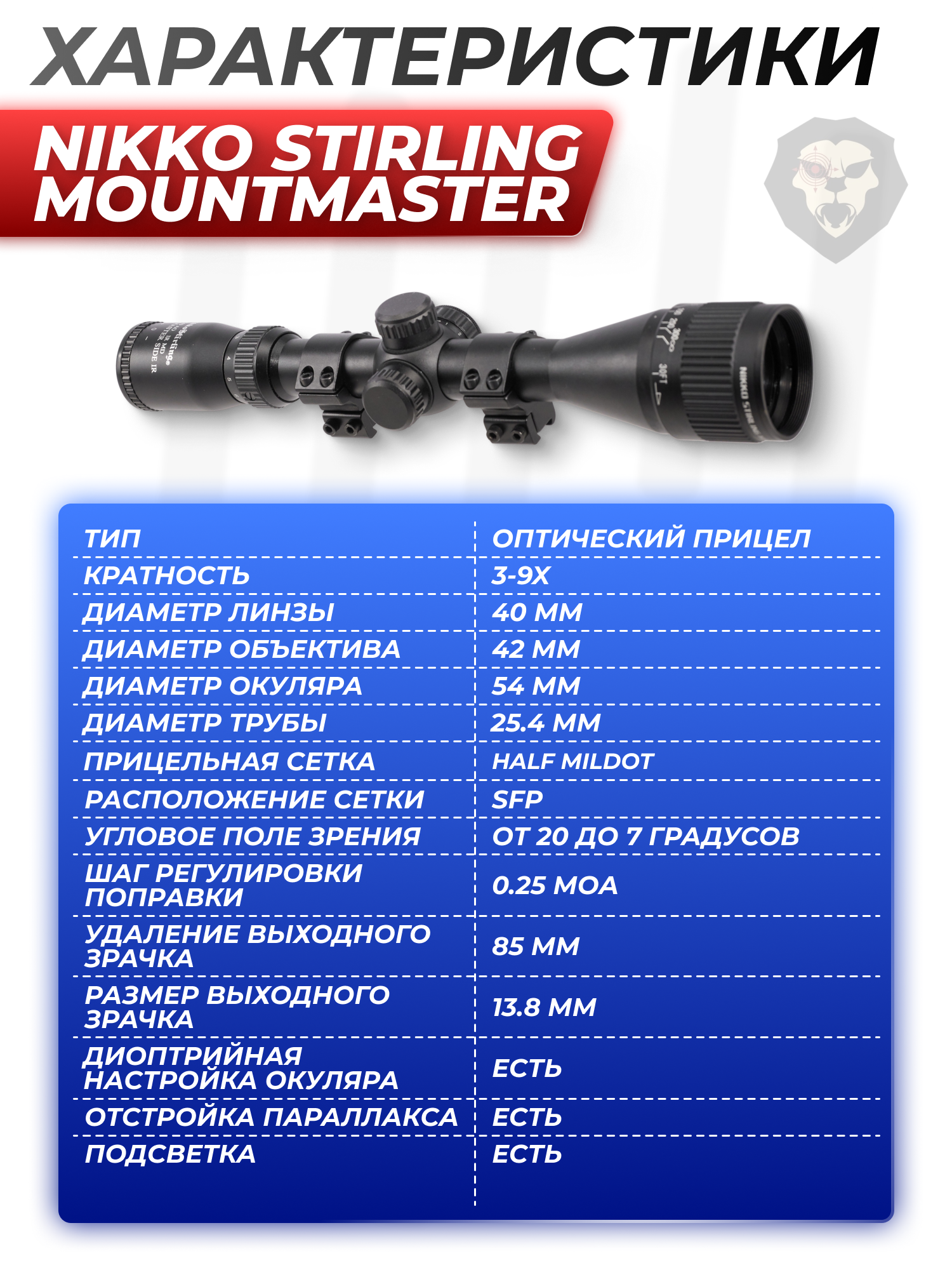 Прицел оптический Nikko Stirling MountMaster 3-9x40 (Half MD, подсветка, AO) купить в интернет-магазине Popadiv10.
