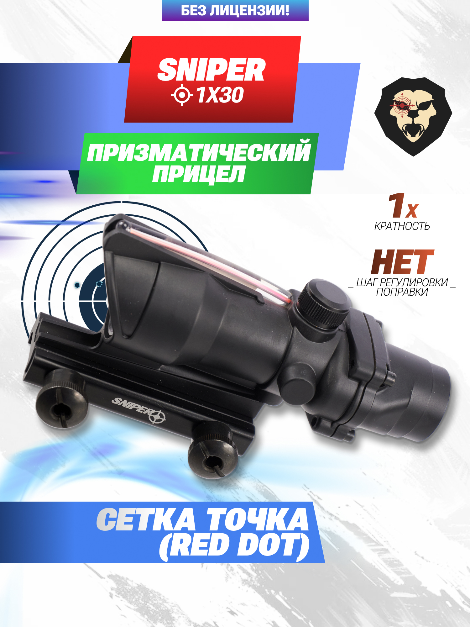 Модель 1x30 компании Sniper - не стандартное исполнение призматического прицела. Экземпляр построен на базе платформы ACOG, предназначенного для поражения целей в пределах досягаемости кратности 4x. Опыт использования прототипа в вооруженных силах разных стран отобразил полный набор достоинств модели.
