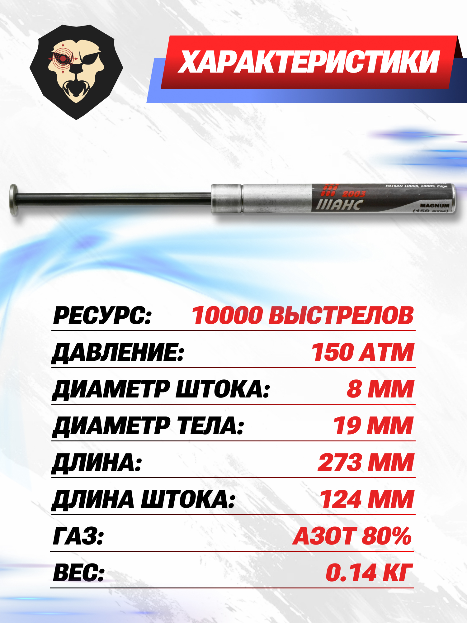 Газовая пружина Шанс 150 Атм для Hatsan 1000X, 1000S, Edge (Магнум) купить в интернет-магазине Popadiv10.