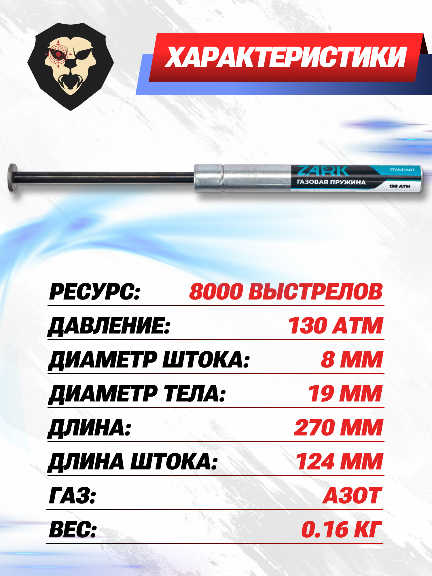 Представленная газовая пружина относится к классу Standart и согласно заявленным параметрам выдает давление 130 Атм. Установку рекомендуется производить в специализированной мастерской, однако наличие докупаемого отдельно съемника дает возможность выполнить модификацию самому. При этом важно следить за мощностью пневматики и не превышать разрешенный показатель.