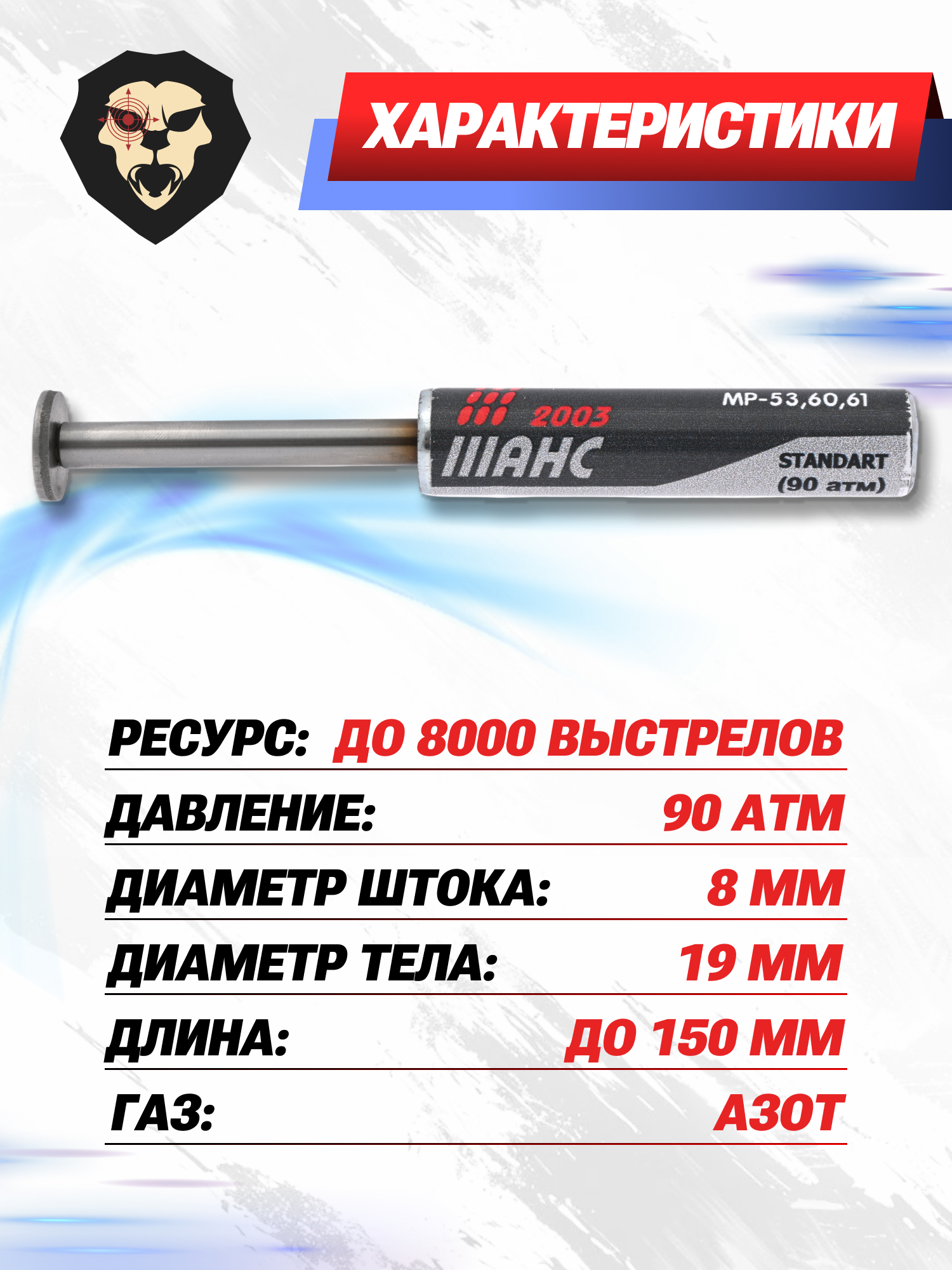 Для модификации винтовок популярных линеек МР-53, МР-60 и МР-61 компания Шанс представила недорогую ГП в классификации Standart. Газовая пружина Байкал заправляется азотом, при этом усилие воздействия на шток компрессора пневматики составляет 90 Атм. При условии, что мощность винтовки сохраняется в разрешенном диапазоне для владения без лицензии, тюнинг при желании проводится в домашних условиях.