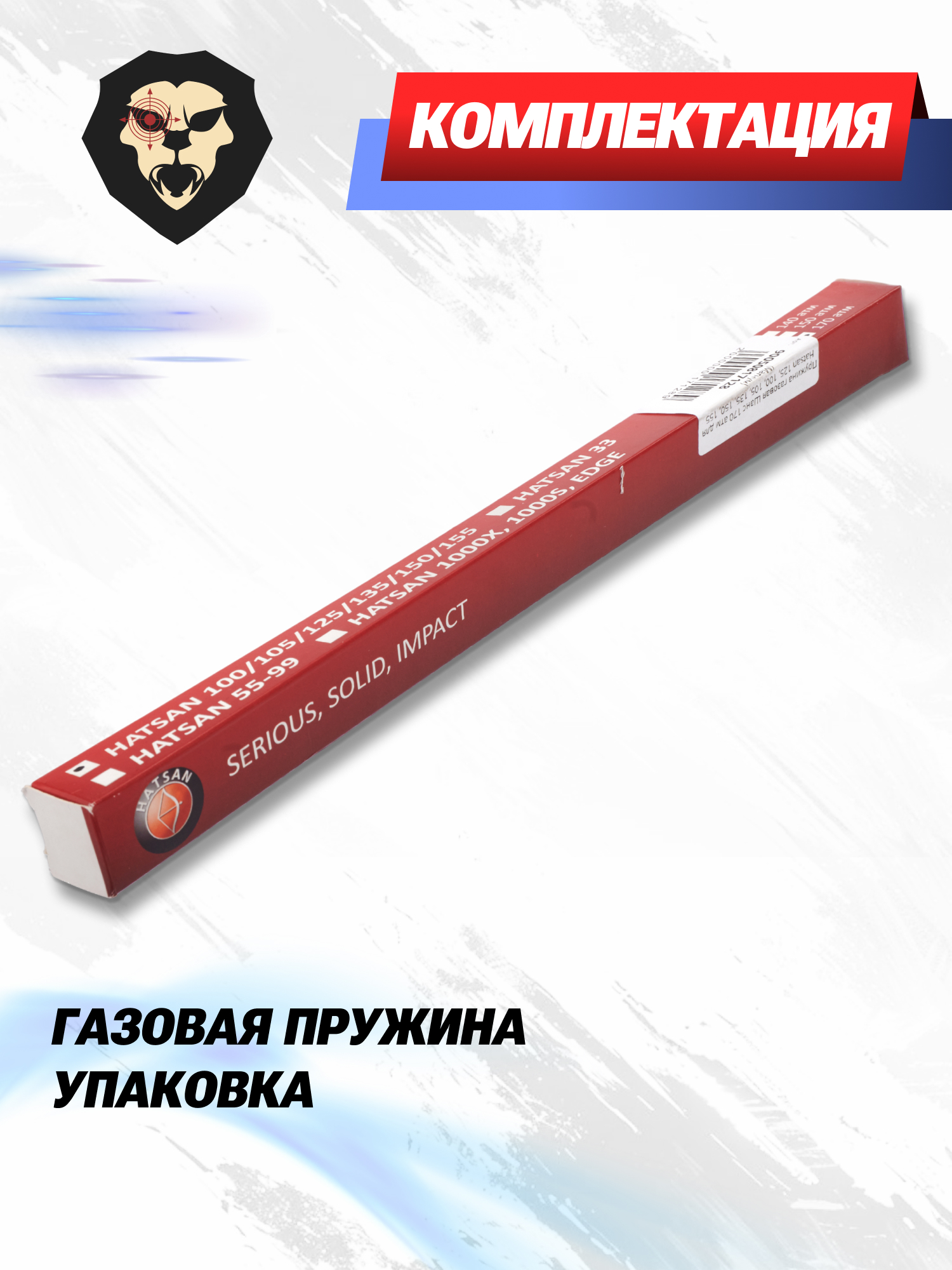 Газовая пружина Hatsan имеет общую длину 32.1 см и изготавливается в корпусе из прочного металла. Внутрь закачивается азот - из преимуществ изделия стоит отметить отсутствие эффекта усадки. Производитель заявляет рабочий ресурс 10000 выстрелов с сохранением характеристик на всем сроке эксплуатации.