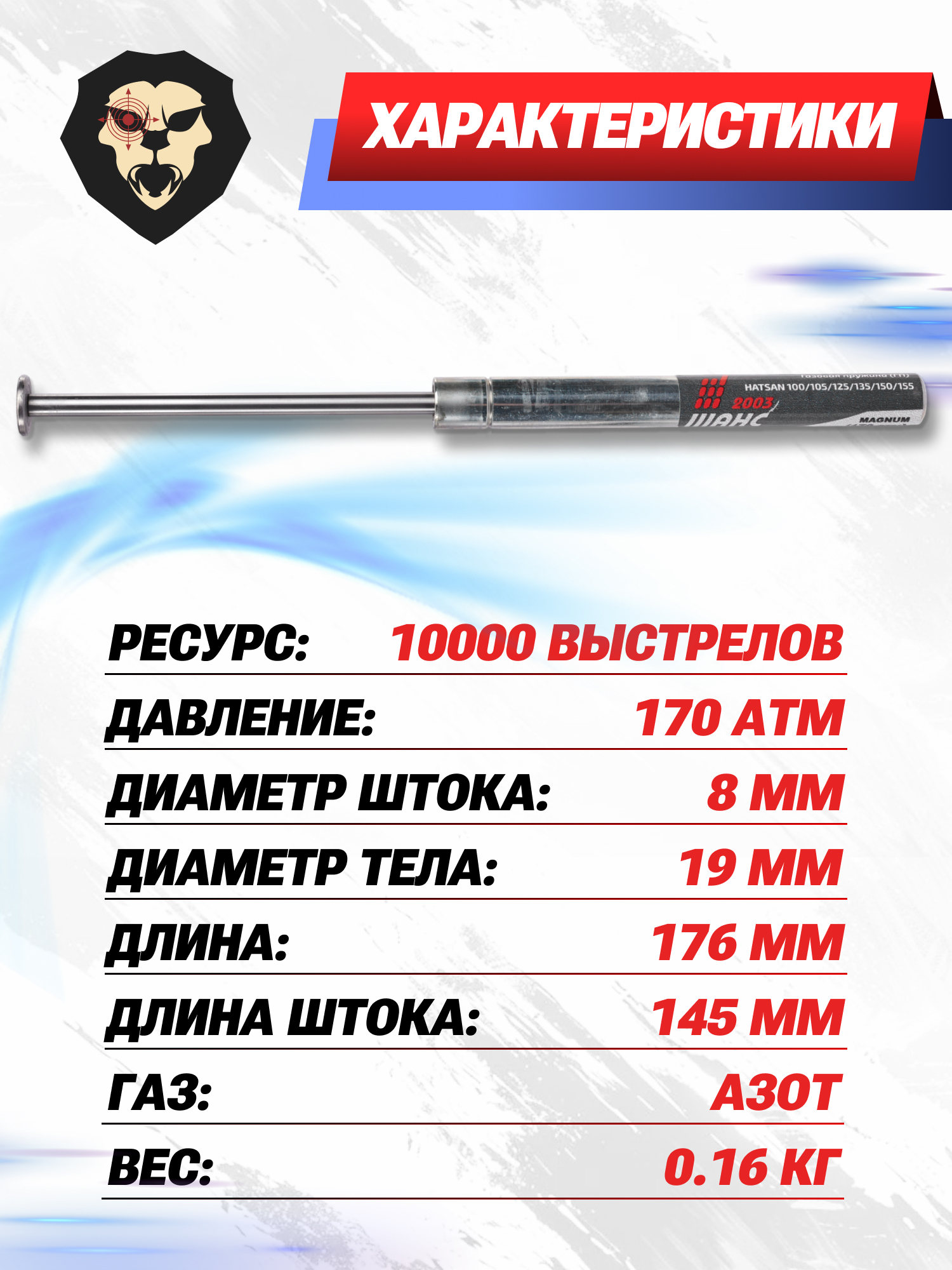 Газовая пружина Шанс 170 Атм для Hatsan 125, 100, 105, 135, 150, 155 (Магнум) купить в интернет-магазине Popadiv10.