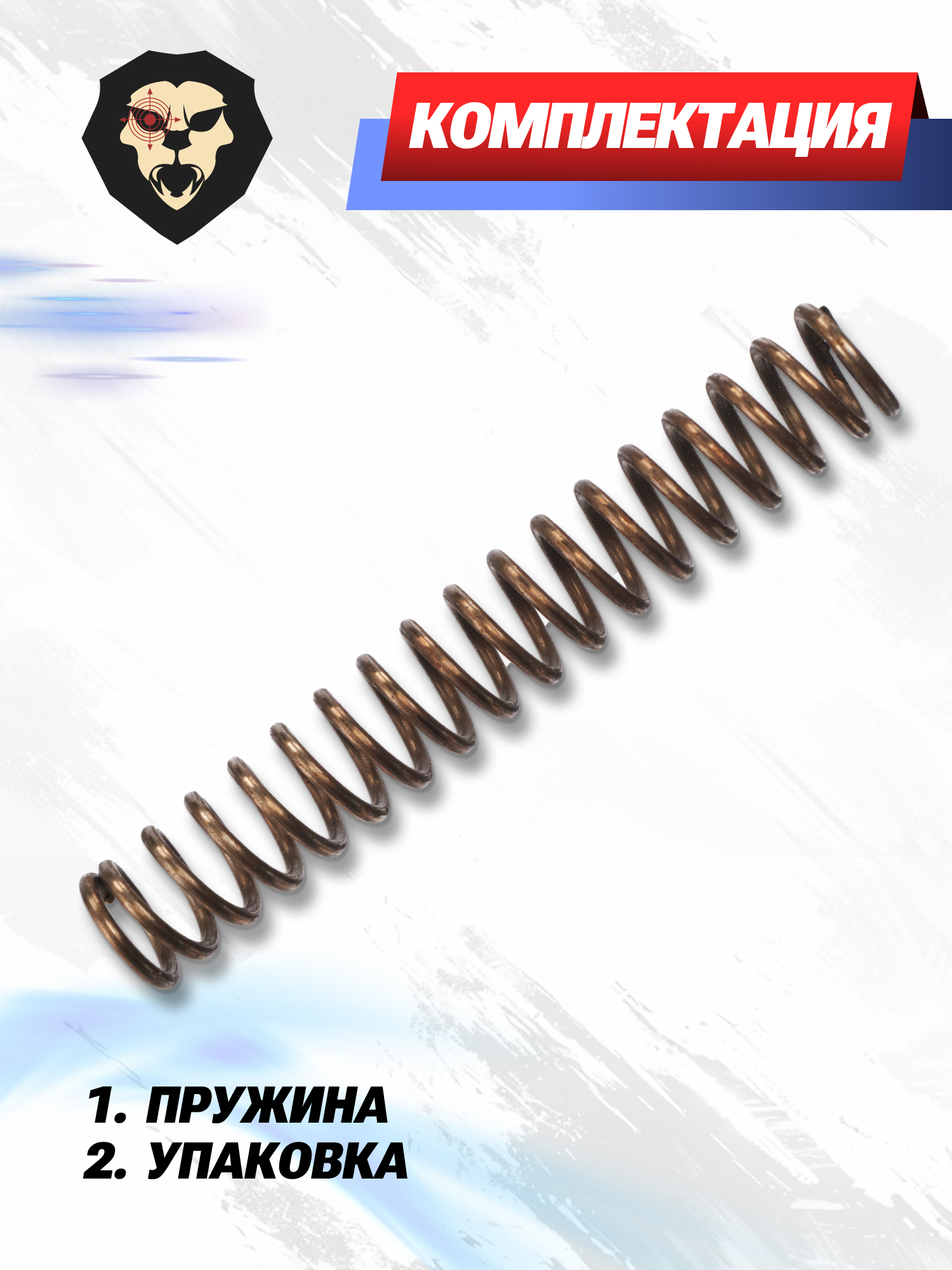 В качестве материала используется закаленная сталь. Деталь встает на штатное посадочное место, следовательно, замена не потребует дополнительных доработок. Благодаря отсутствию задиров и наличию законцовки под плоскость пружина свободно двигается внутри шахты ударной группы, обеспечивая стабильную работу пневматики Dobermann.