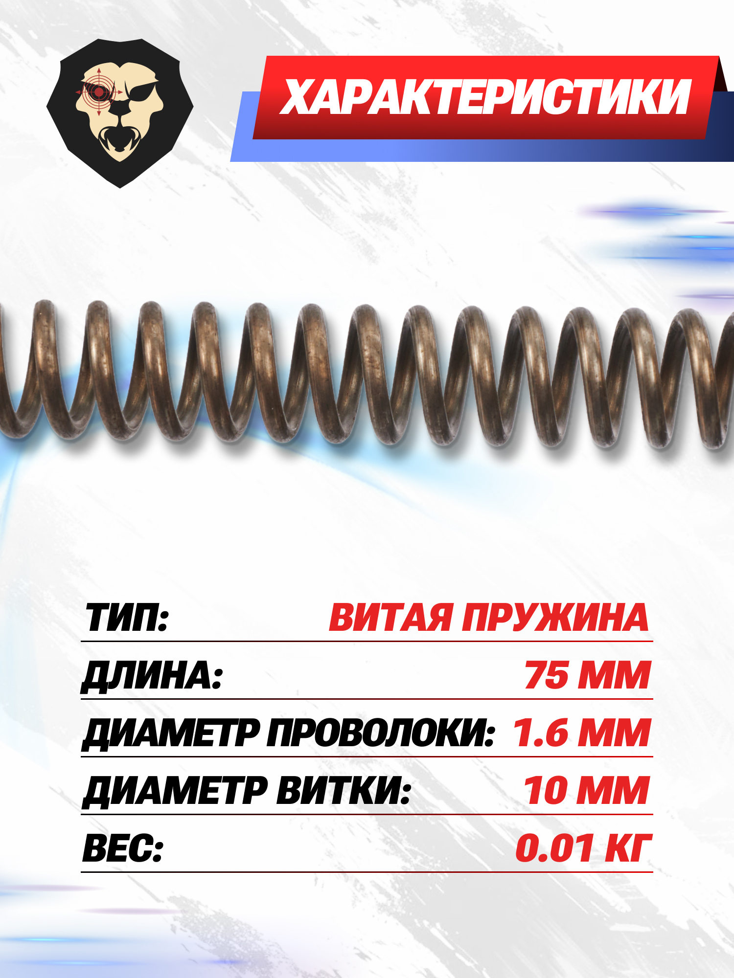 Информация о товаре "Пружина ударника Dobermann (75 мм, диаметр 1.6 мм)" носит ознакомительный характер, и не является публичной офертой, определяемой положениями Статьи 437 Гражданского кодекса Российской Федерации, характеристики, внешний вид, цвет и комплектация могут быть изменены производителем без уведомления.