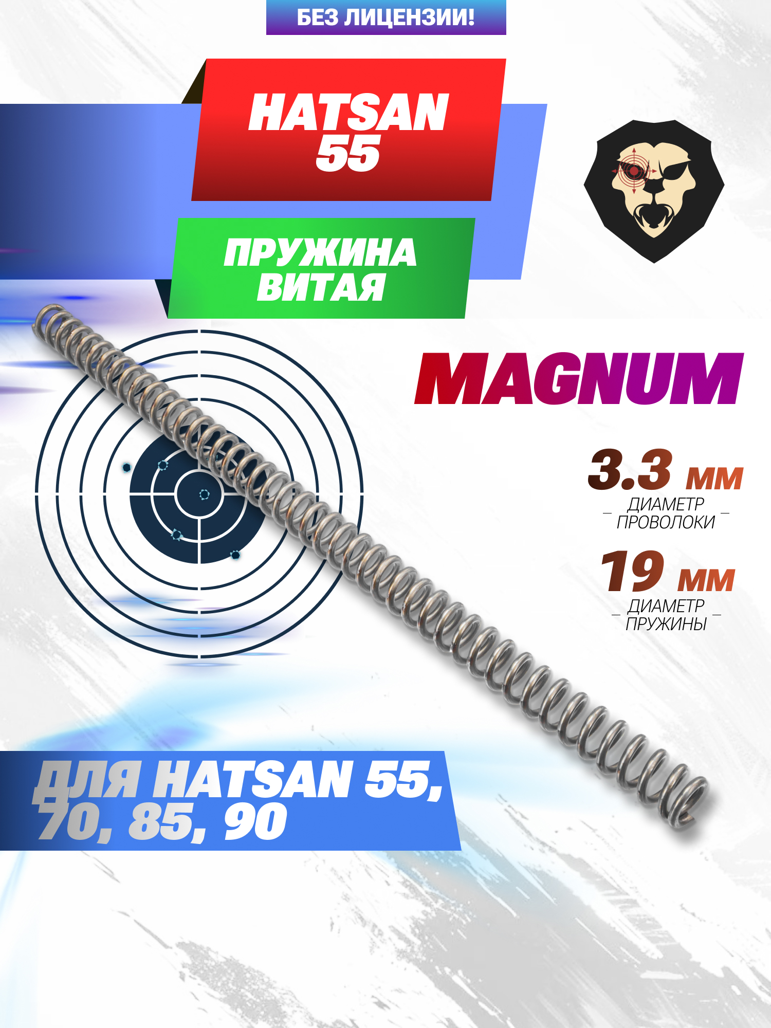 Турецкая фирма Hatsan, помимо самой пневматики, предоставляет широкий ассортимент запчастей для ее техобслуживания. В том числе, ассортимент включает витые пружины, которые создаются под различные стрелковые единицы бренда. В рассматриваемом исполнении деталь рассчитана на использование совместно с винтовкой Mod 55, однако конструктивное сходство «воздушек» также допускает установку в линейки 70, 85 и 90.