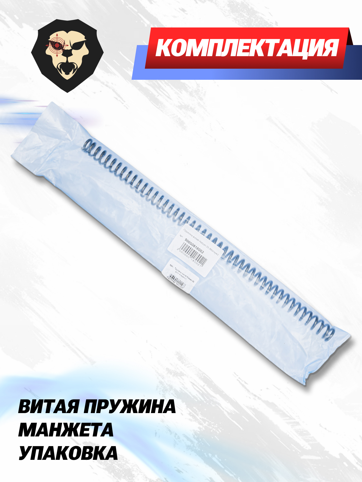 Усиленная пружина изготавливается из утолщенной проволоки с сечением 3.3 мм. Материалом выступает прочная качественная сталь - для принятия витой формы пруток наматывается на оправку, после чего проходит процедуру закаливания. В результате деталь приобретает устойчивость к деформации, ввиду чего выделяется увеличенным рабочим ресурсом.