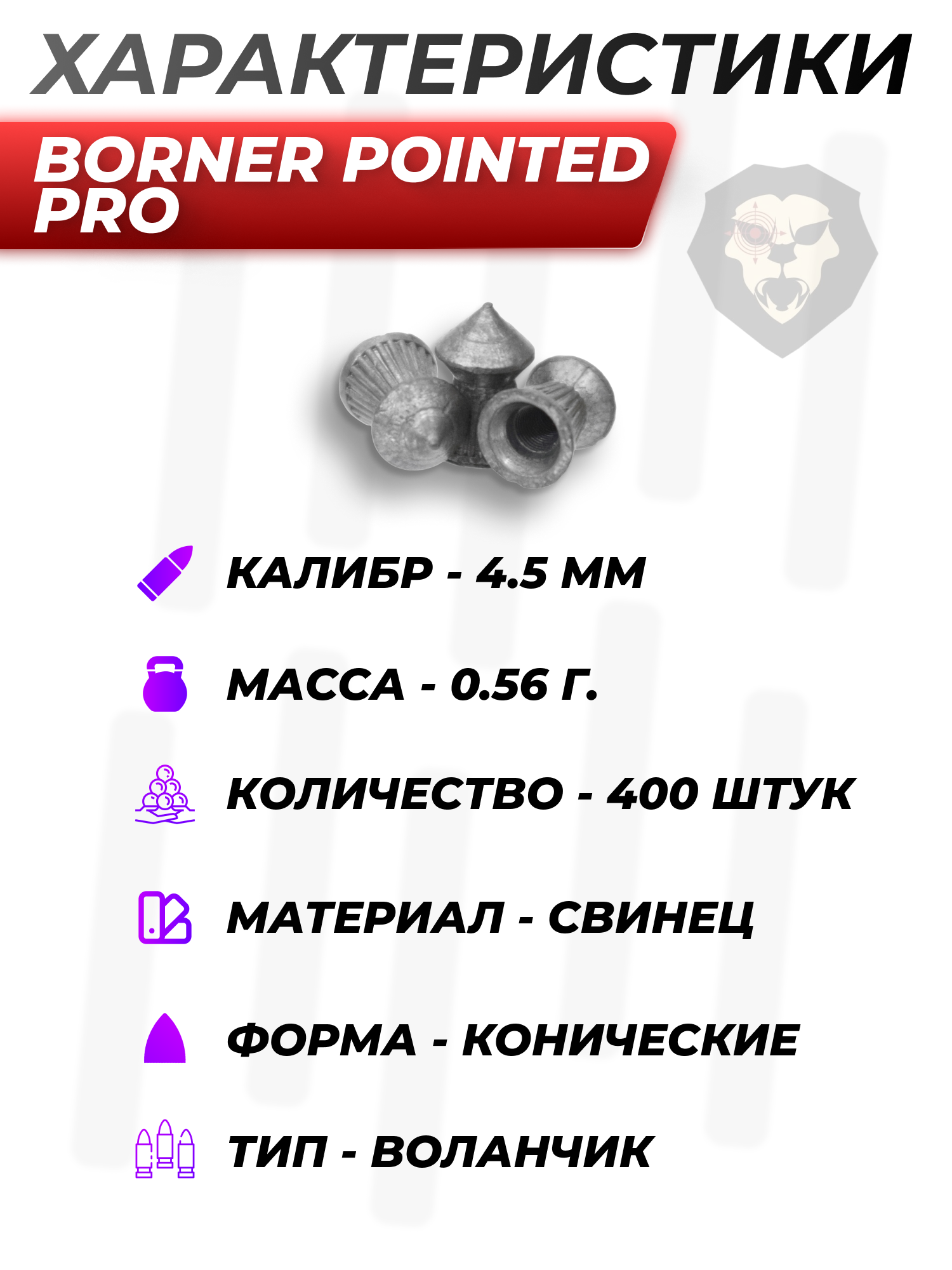 Пули пневматические Borner Pointed Pro 4.5 мм (400 шт, 0.56 грамм) купить в интернет-магазине Popadiv10.