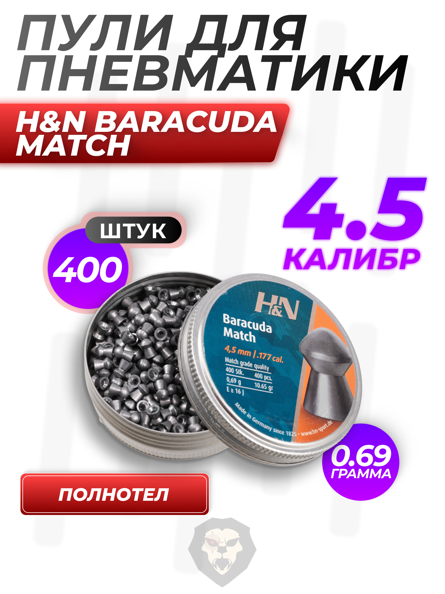 Пули пневматические H&N Baracuda Match 4.5 мм (400 шт, 0.69 г) купить в интернет-магазине Popadiv10.