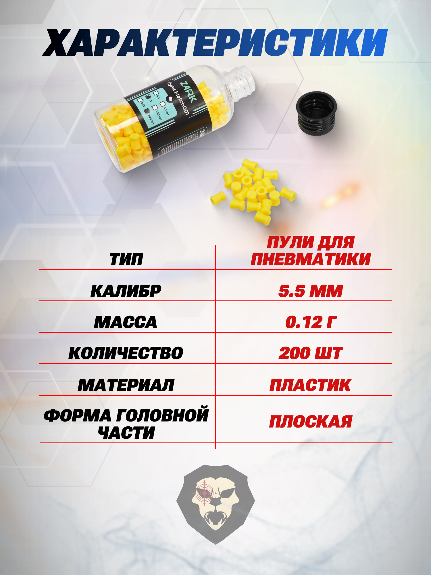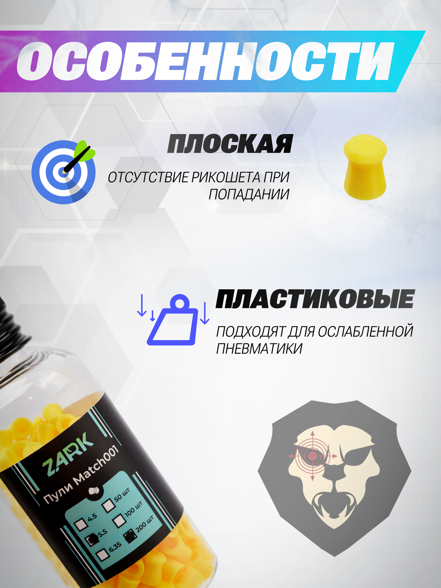 Пули для пневматики легкие Zark Arms Match001 5.5 мм (пластик, 200 шт, 0.12 г, для винтовок до 3 Дж) купить в интернет-магазине Popadiv10.