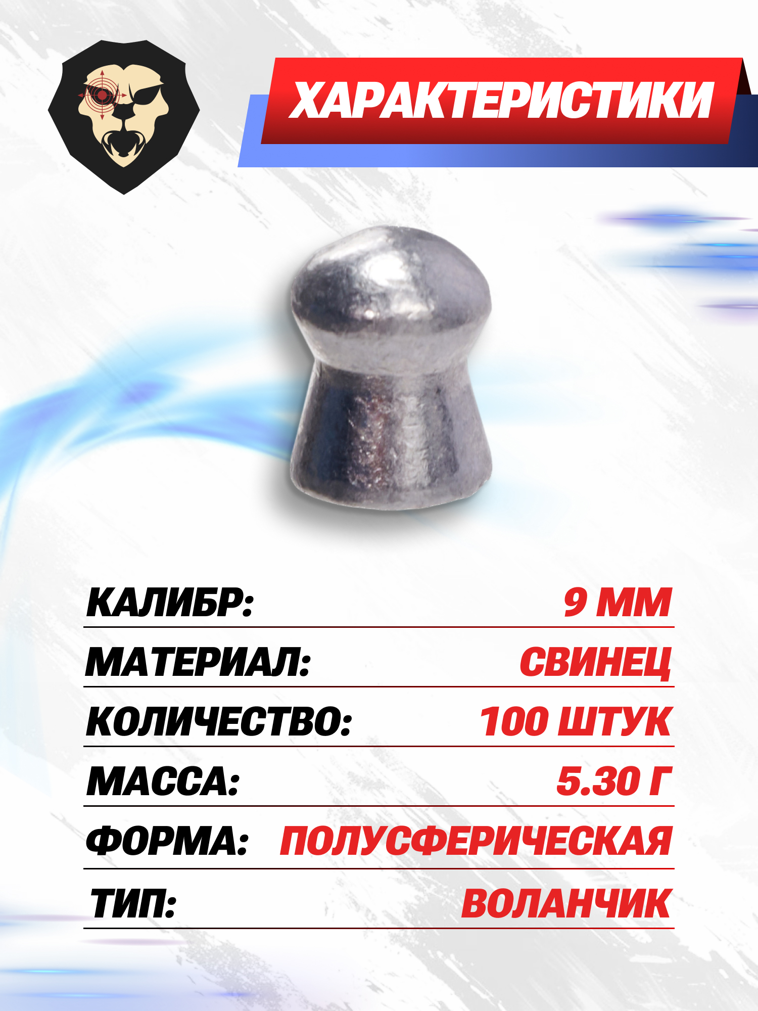 Пули пневматические Apolo Air Boss Domed 9 мм (100 шт, 5.3 грамма) купить в интернет-магазине Popadiv10.