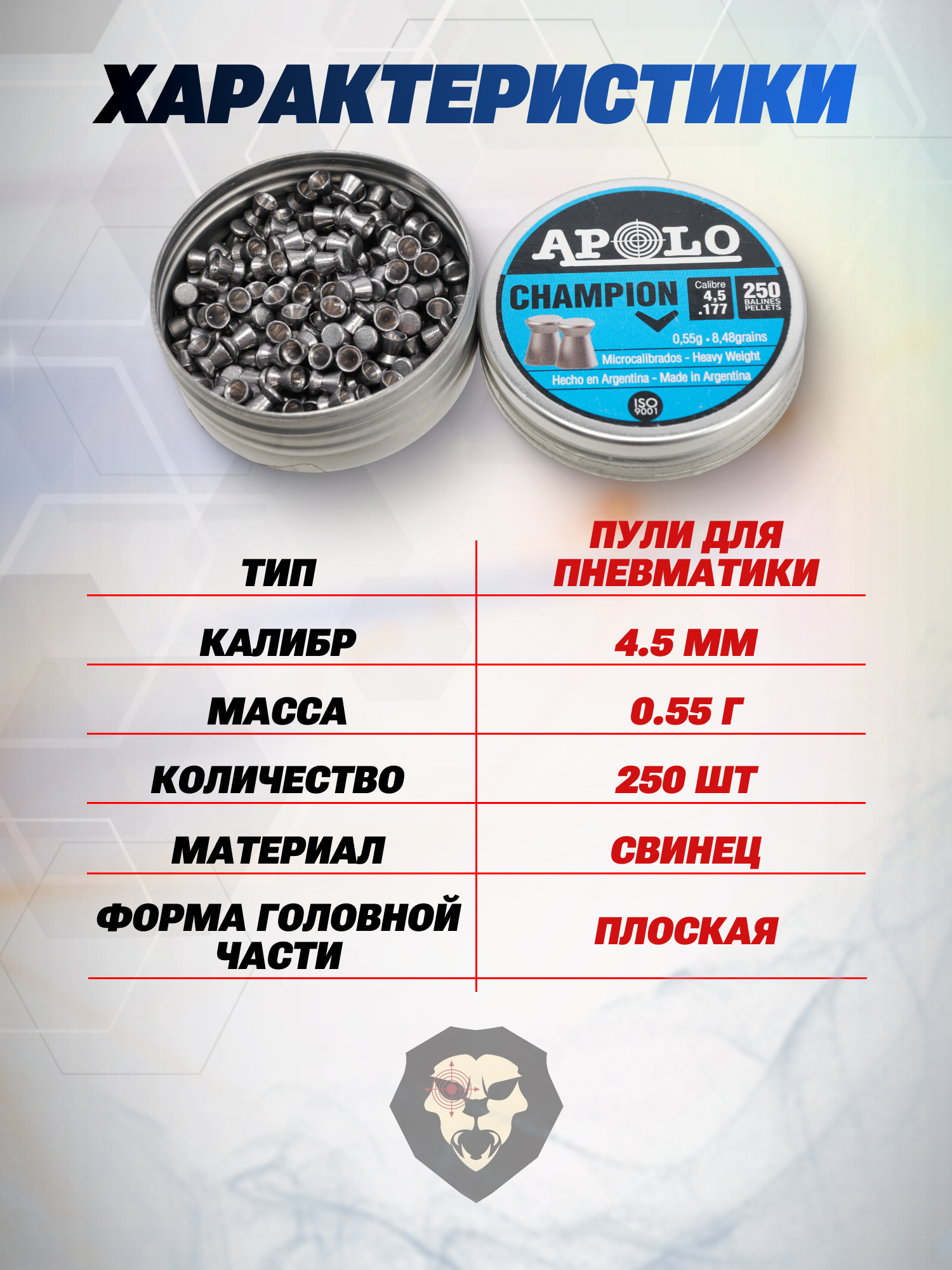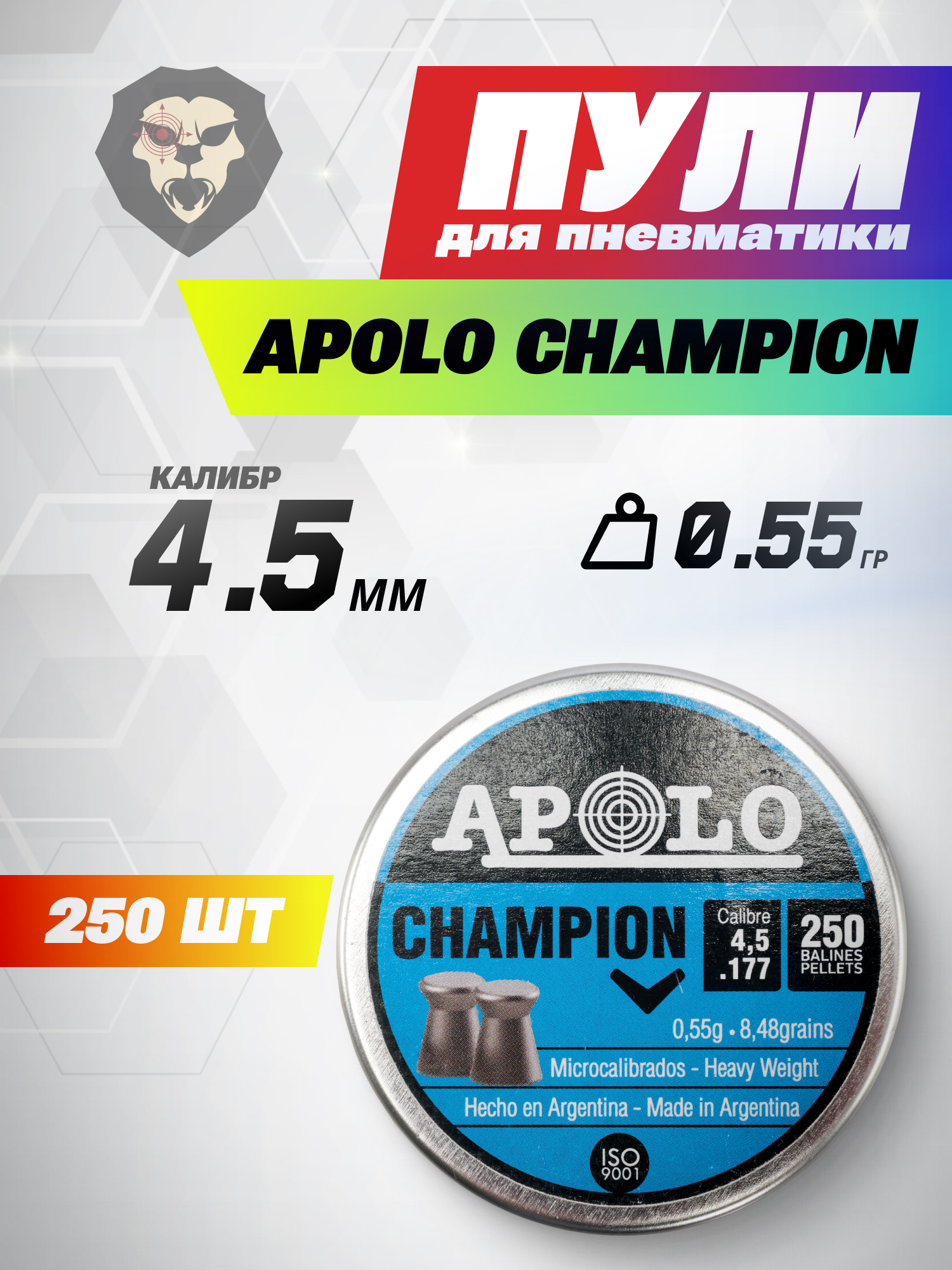Пули пневматические Apolo Champion 4.5 мм (250 шт, 0.55 гр) купить в интернет-магазине Popadiv10.