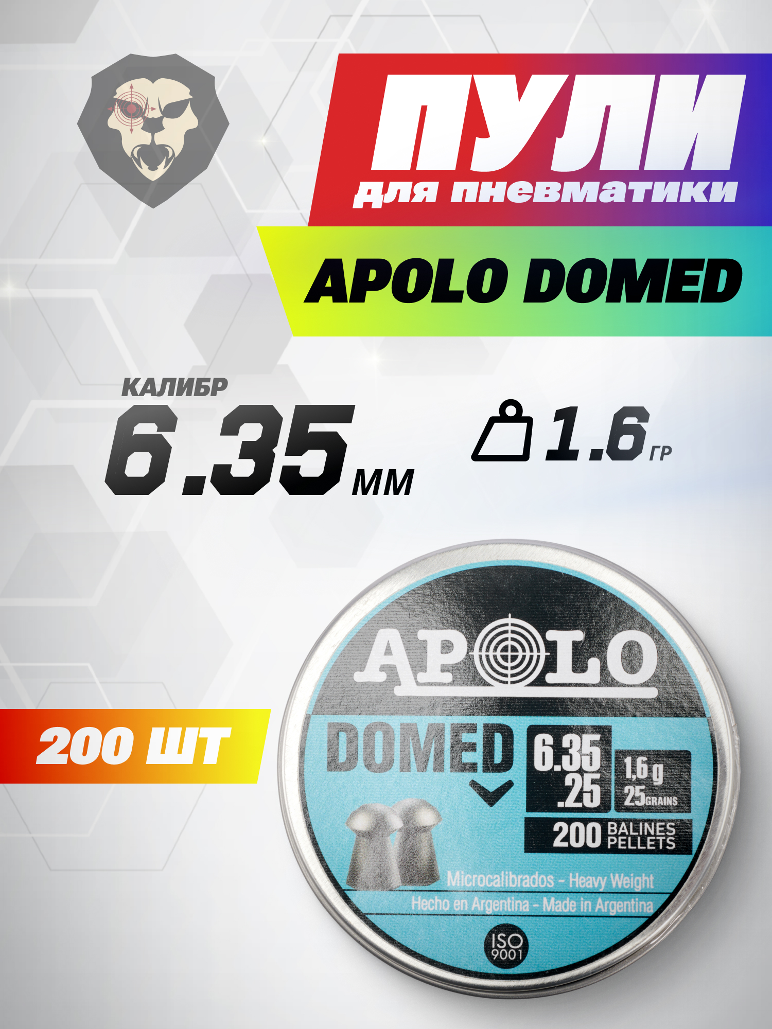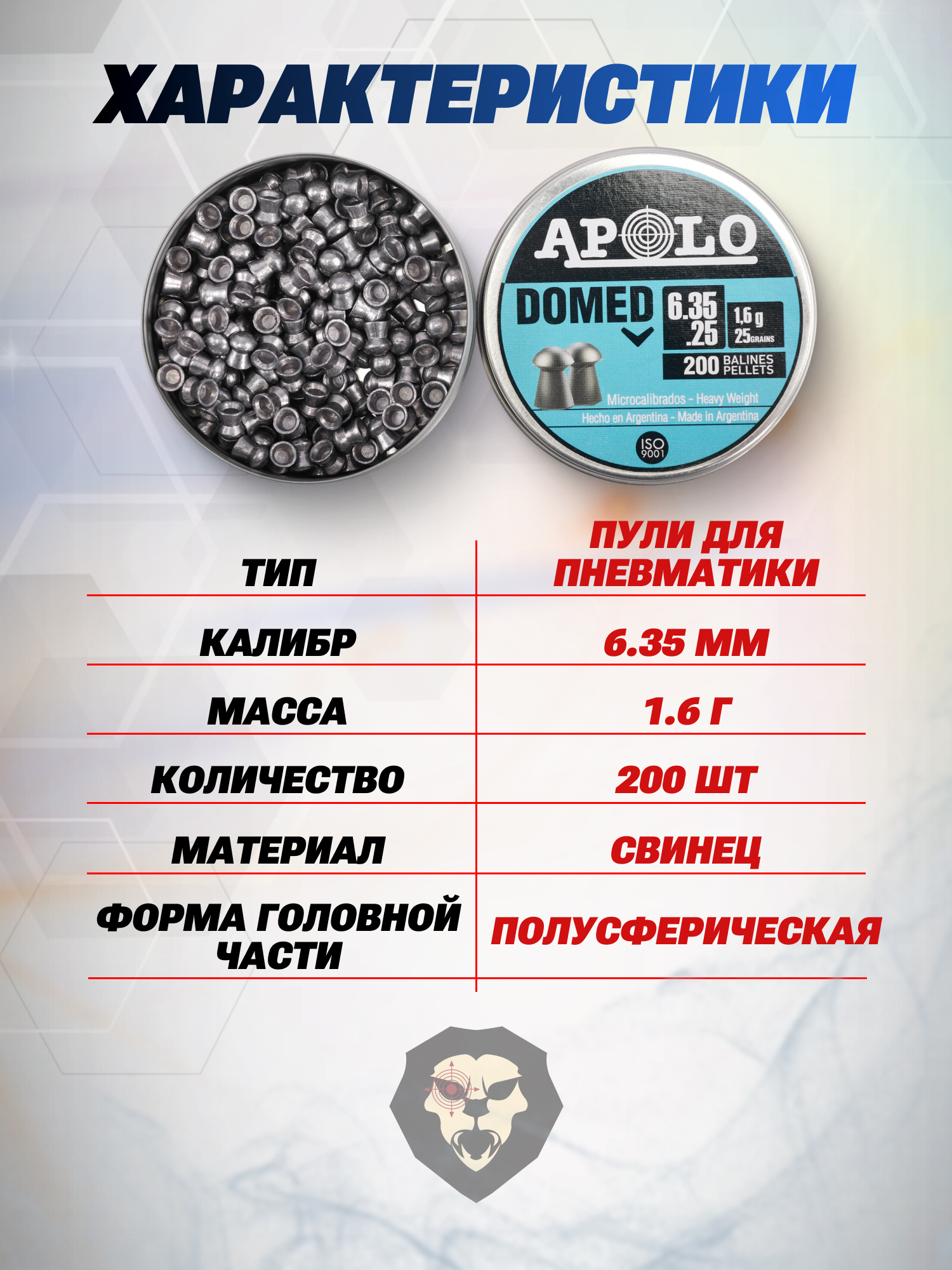 Пули пневматические Apolo Domed 6.35 мм (200 шт, 1.6 грамм) купить в интернет-магазине Popadiv10.
