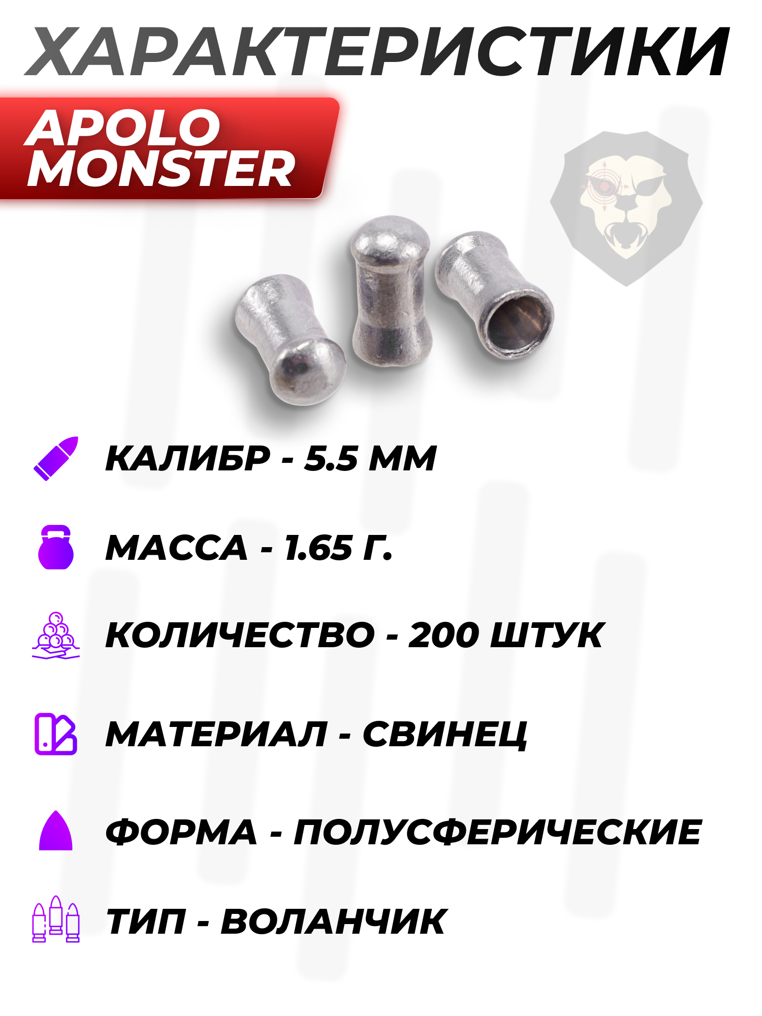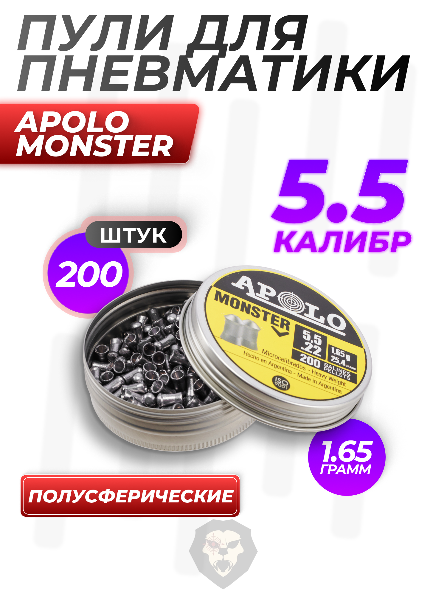 Пули пневматические Apolo Monster 5.5 мм (200 шт, 1.65 грамм) купить в интернет-магазине Popadiv10.