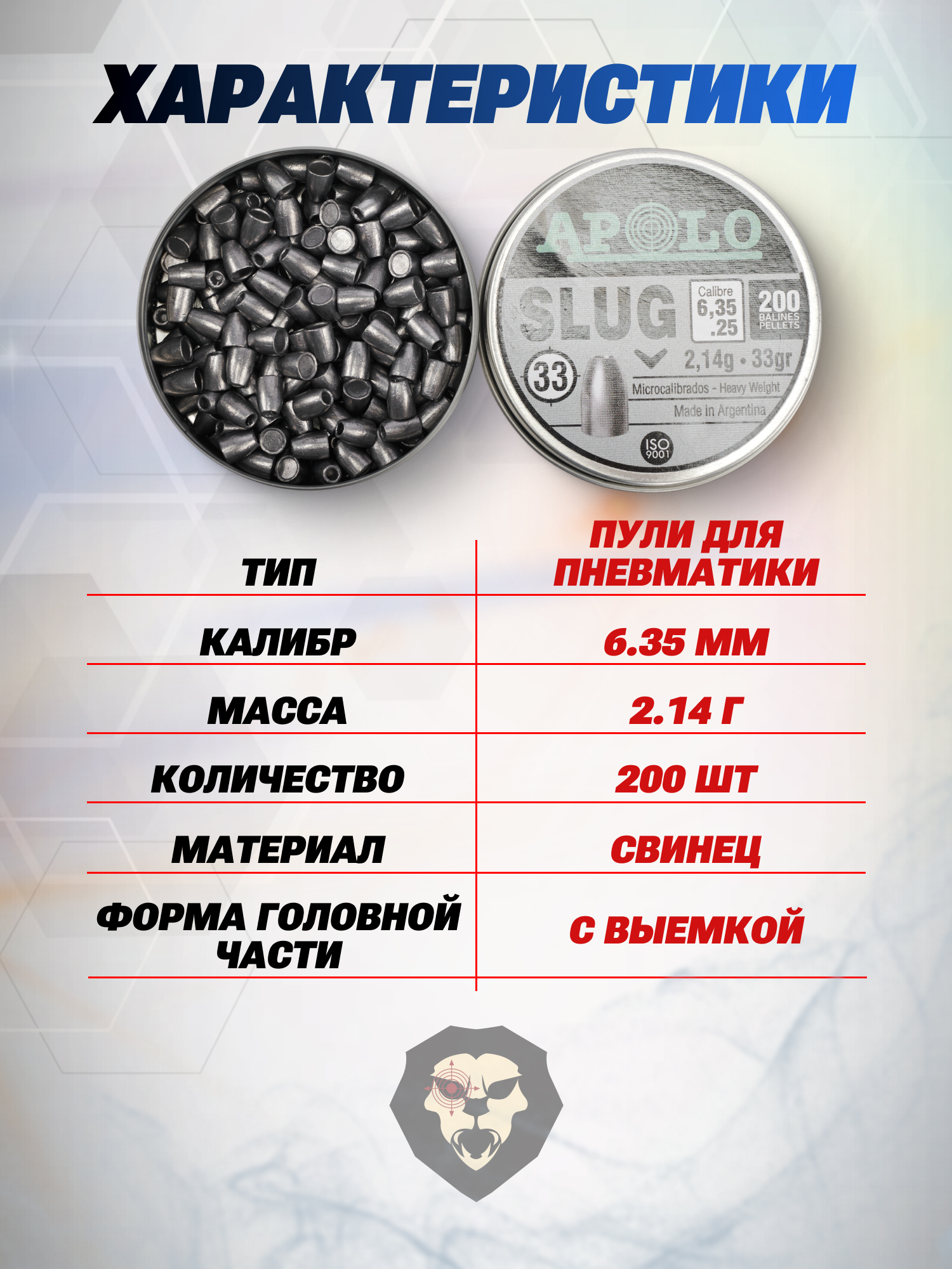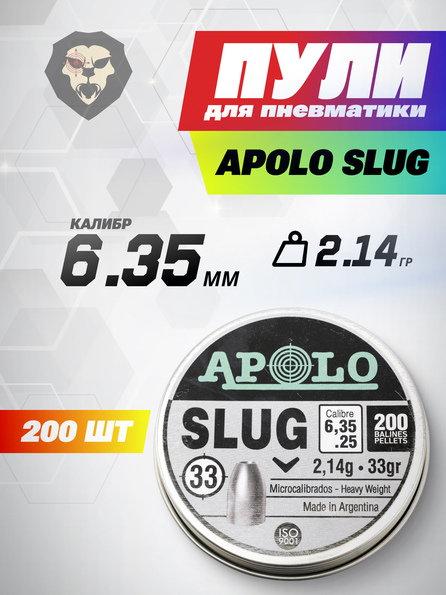 Пули пневматические Apolo Slug 6.35 мм (200 шт, 2.14 гр) купить в интернет-магазине Popadiv10.