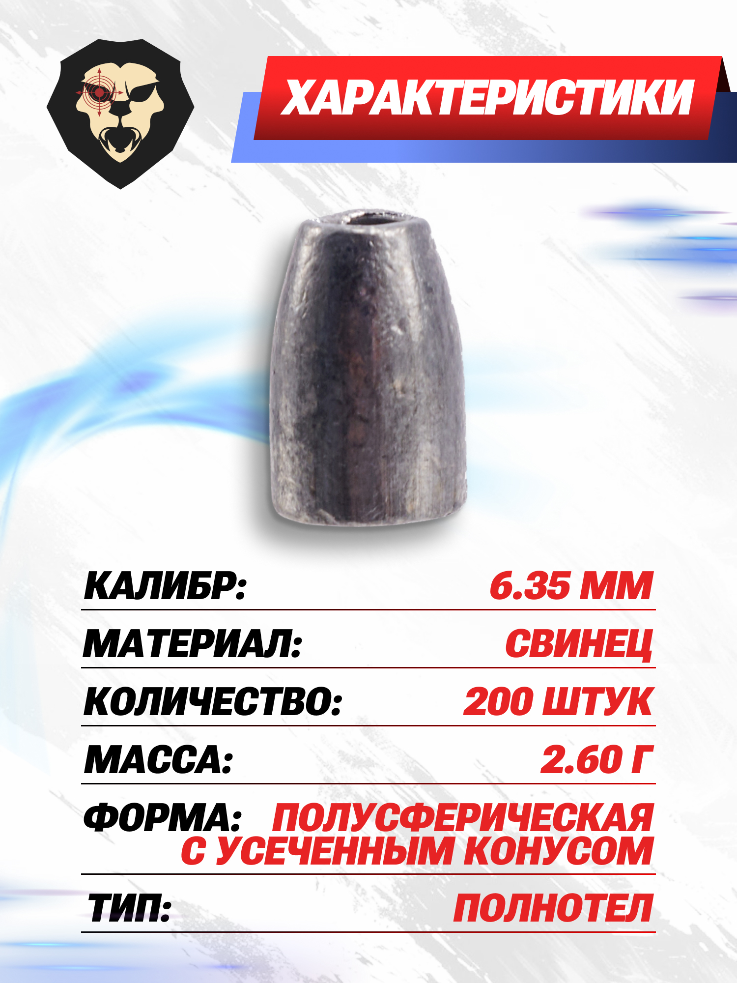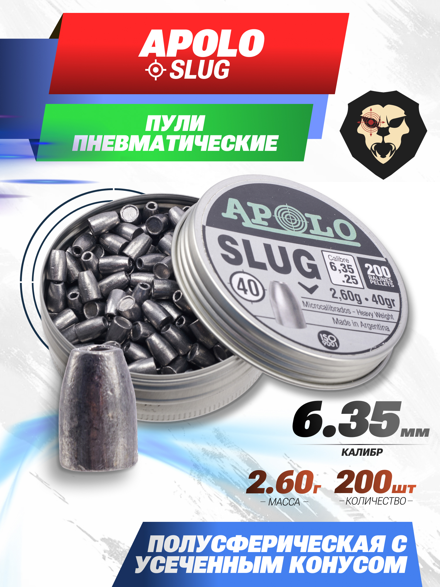 Пули пневматические Apolo Slug 6.35 мм (200 шт, 2.6 гр) купить в интернет-магазине Popadiv10.