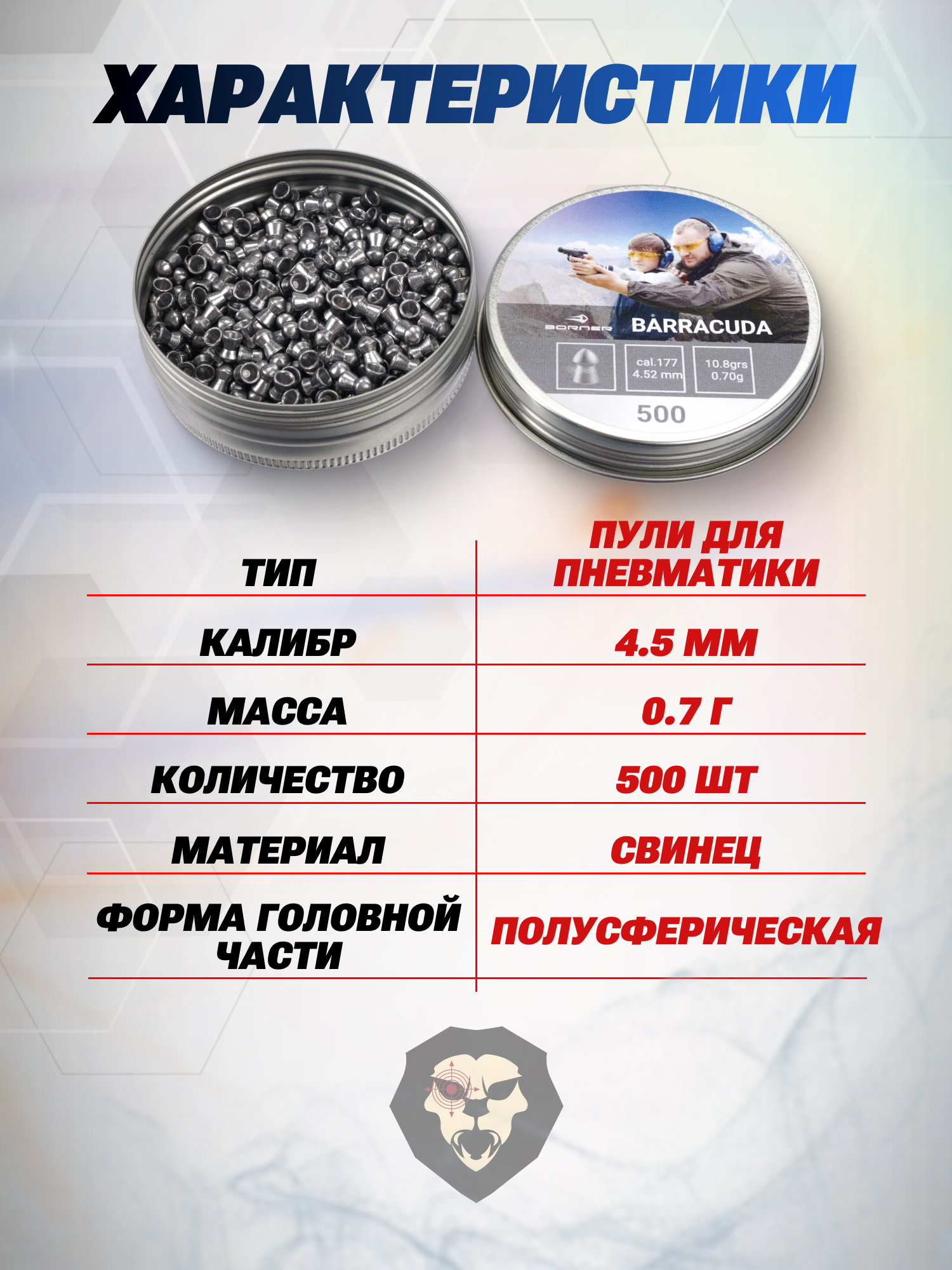 Пули пневматические Borner Barracuda 4.5 мм (500 шт, 0.7 грамм) купить в интернет-магазине Popadiv10.