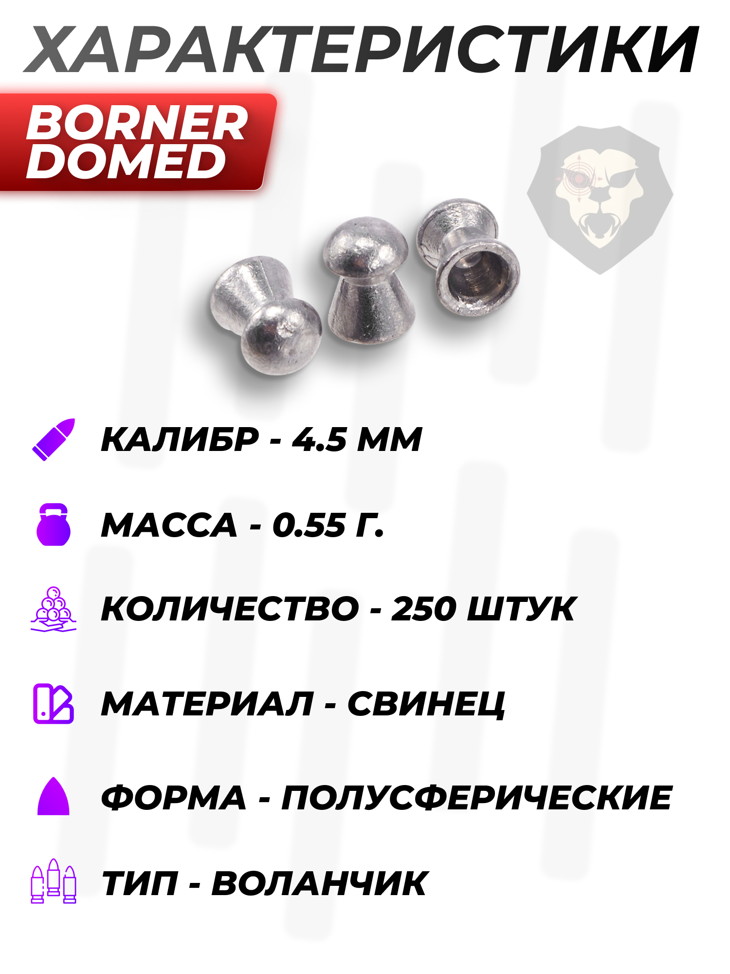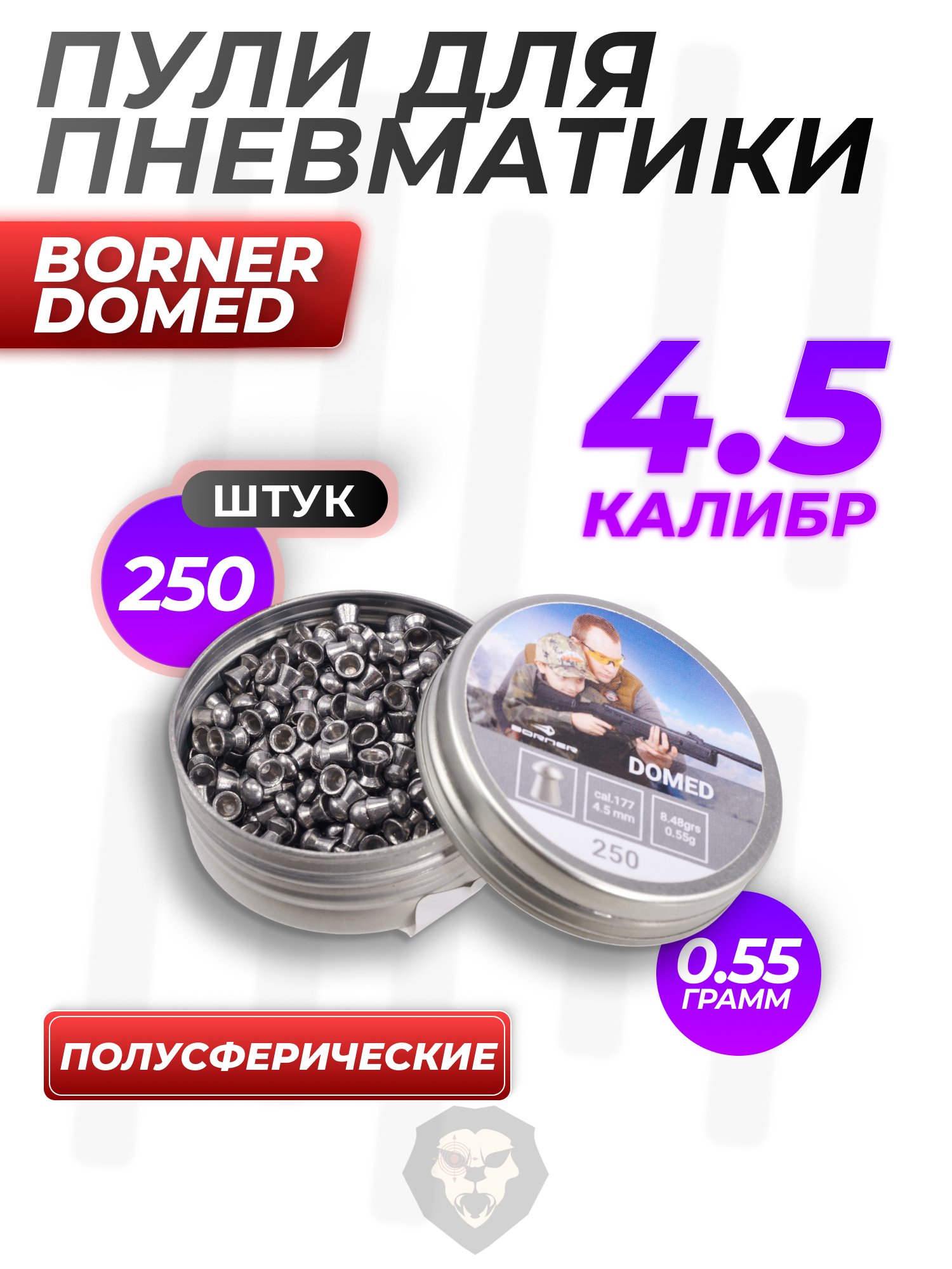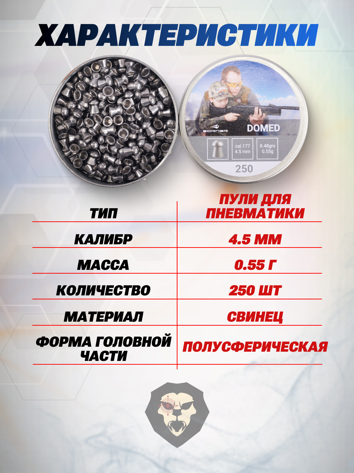 Пули пневматические Borner Domed 4.5 мм (250 шт, 0.55 грамм) купить в интернет-магазине Popadiv10.