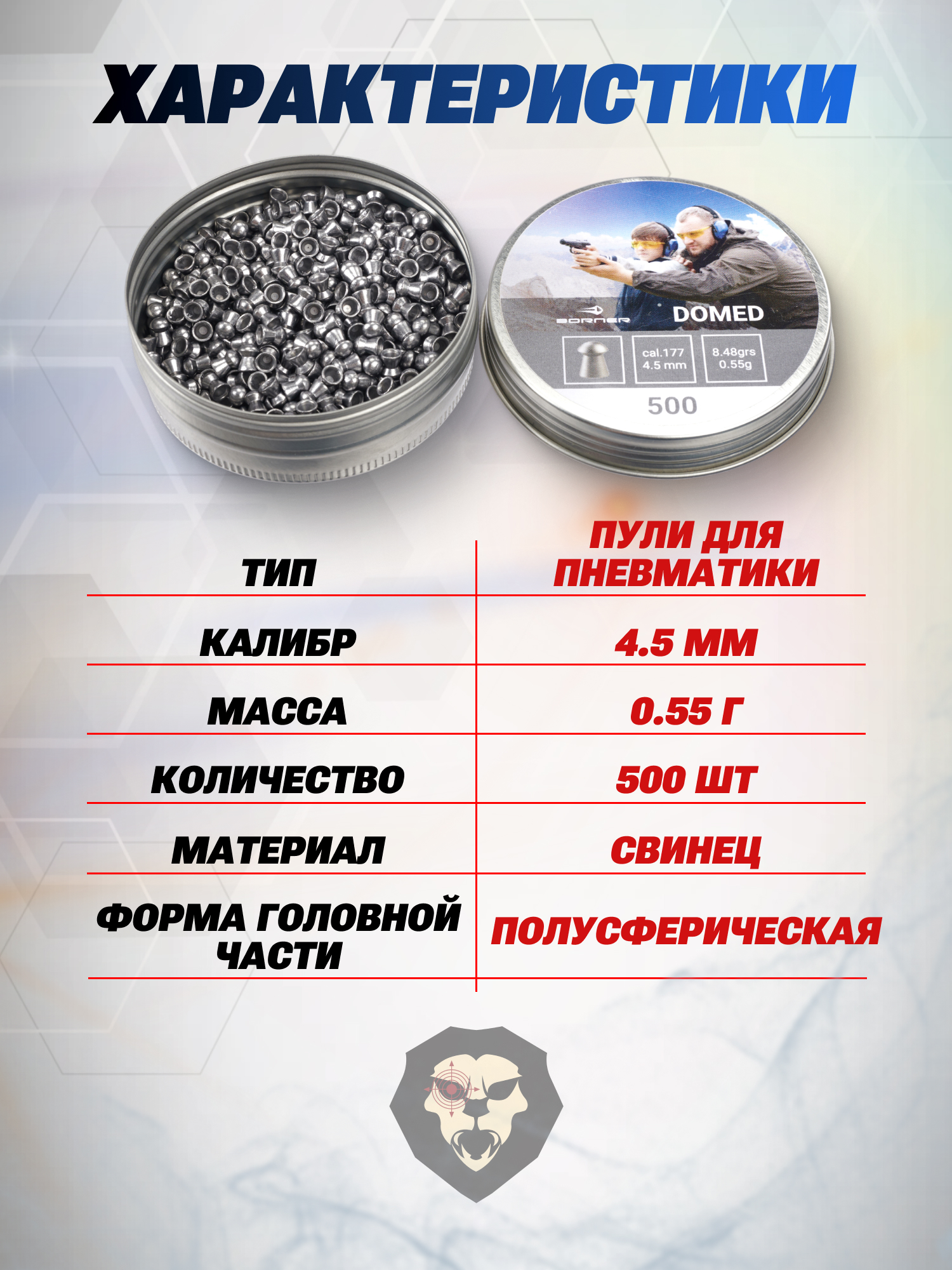 Пули пневматические Borner Domed 4.5 мм (500 шт, 0.55 грамм) купить в интернет-магазине Popadiv10.