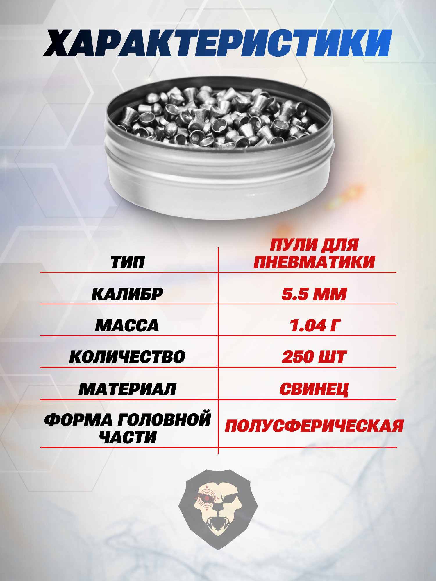 Пули пневматические Borner Domed 5.5 мм (250 шт, 1.04 грамма) купить в интернет-магазине Popadiv10.