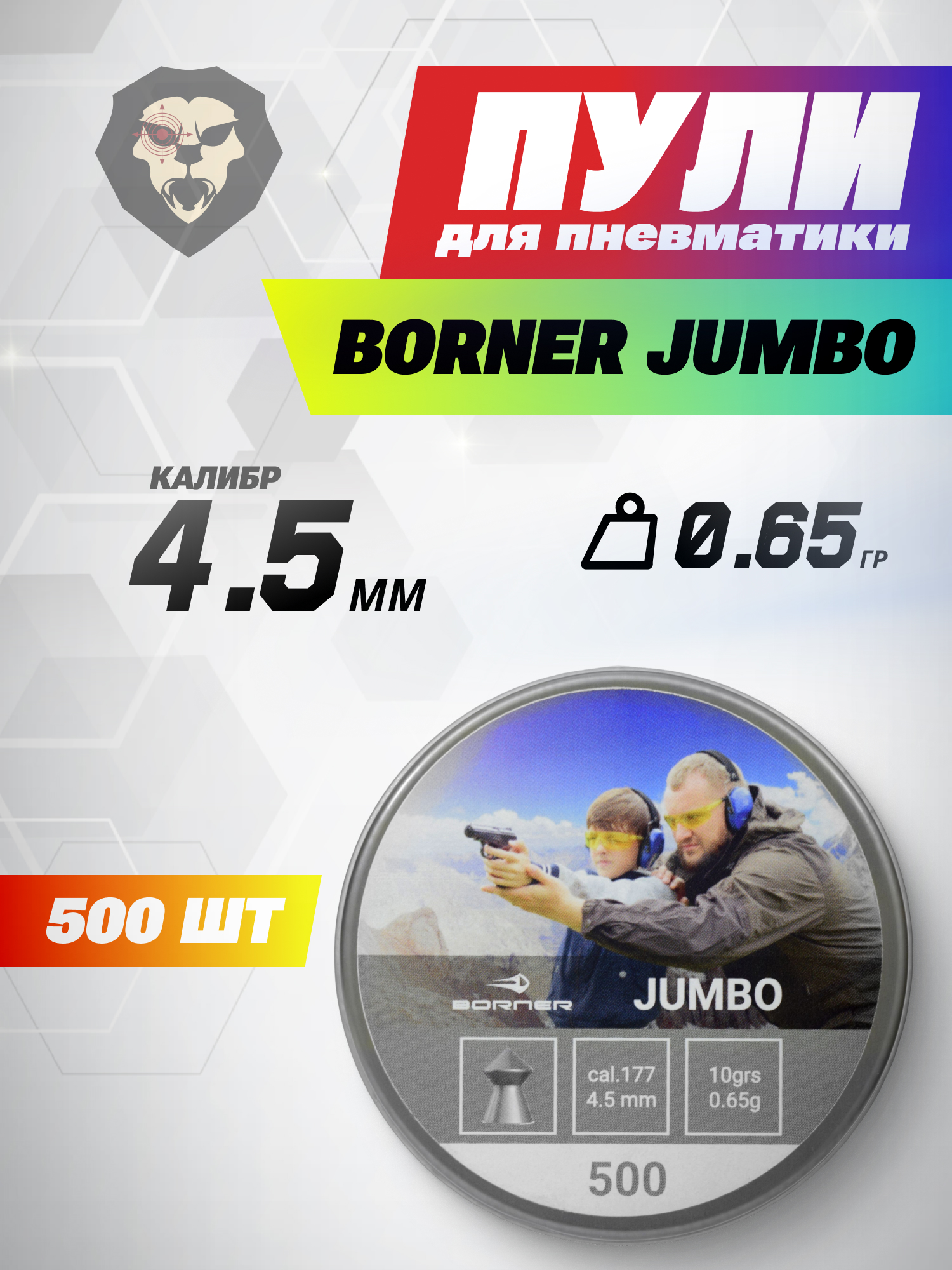 Пули пневматические Borner Jumbo 4.5 мм (500 шт, 0.65 грамм) купить в интернет-магазине Popadiv10.
