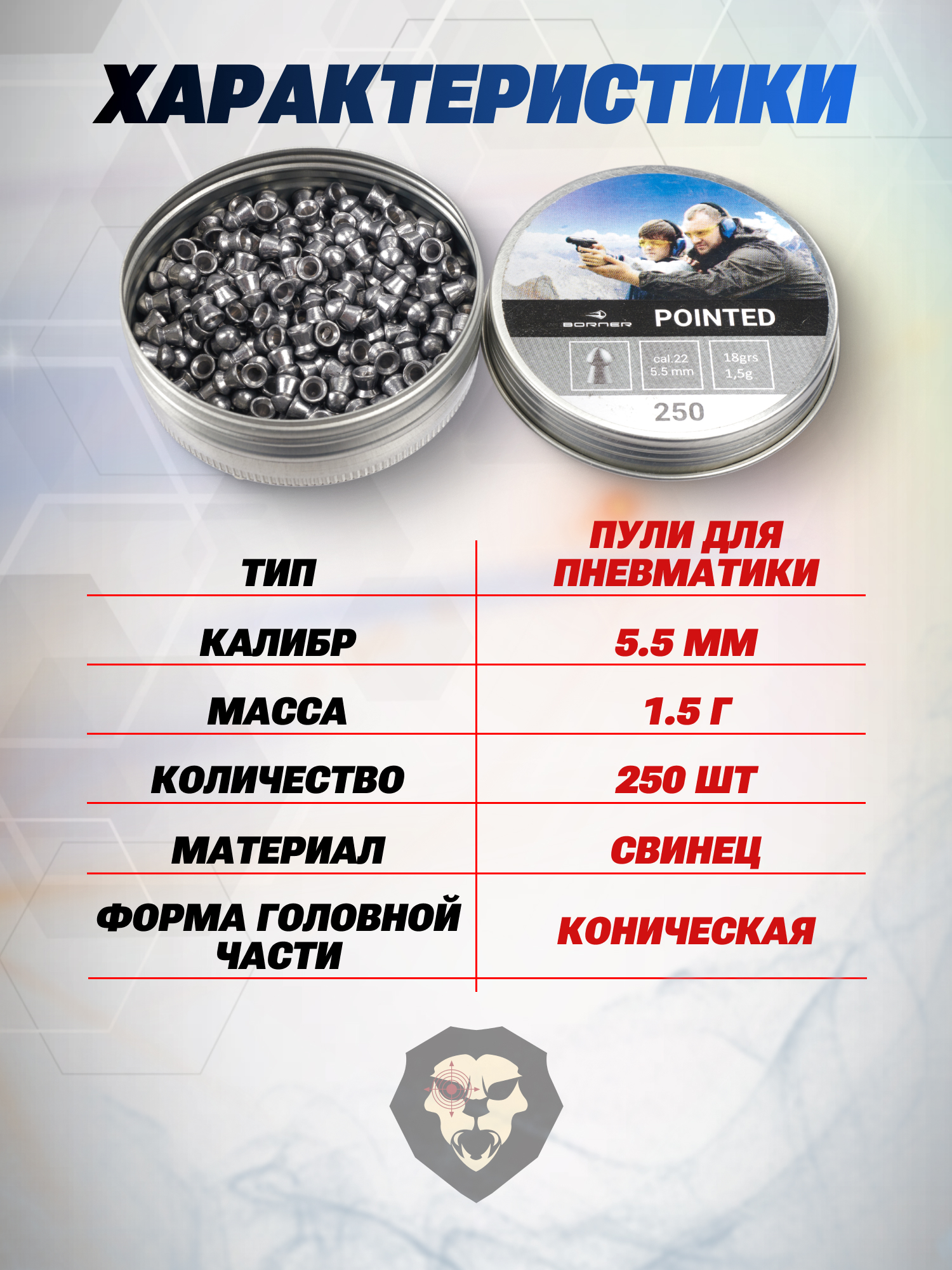 Пули пневматические Borner Pointed 5.5 мм (250 шт, 1.5 грамма) купить в интернет-магазине Popadiv10.