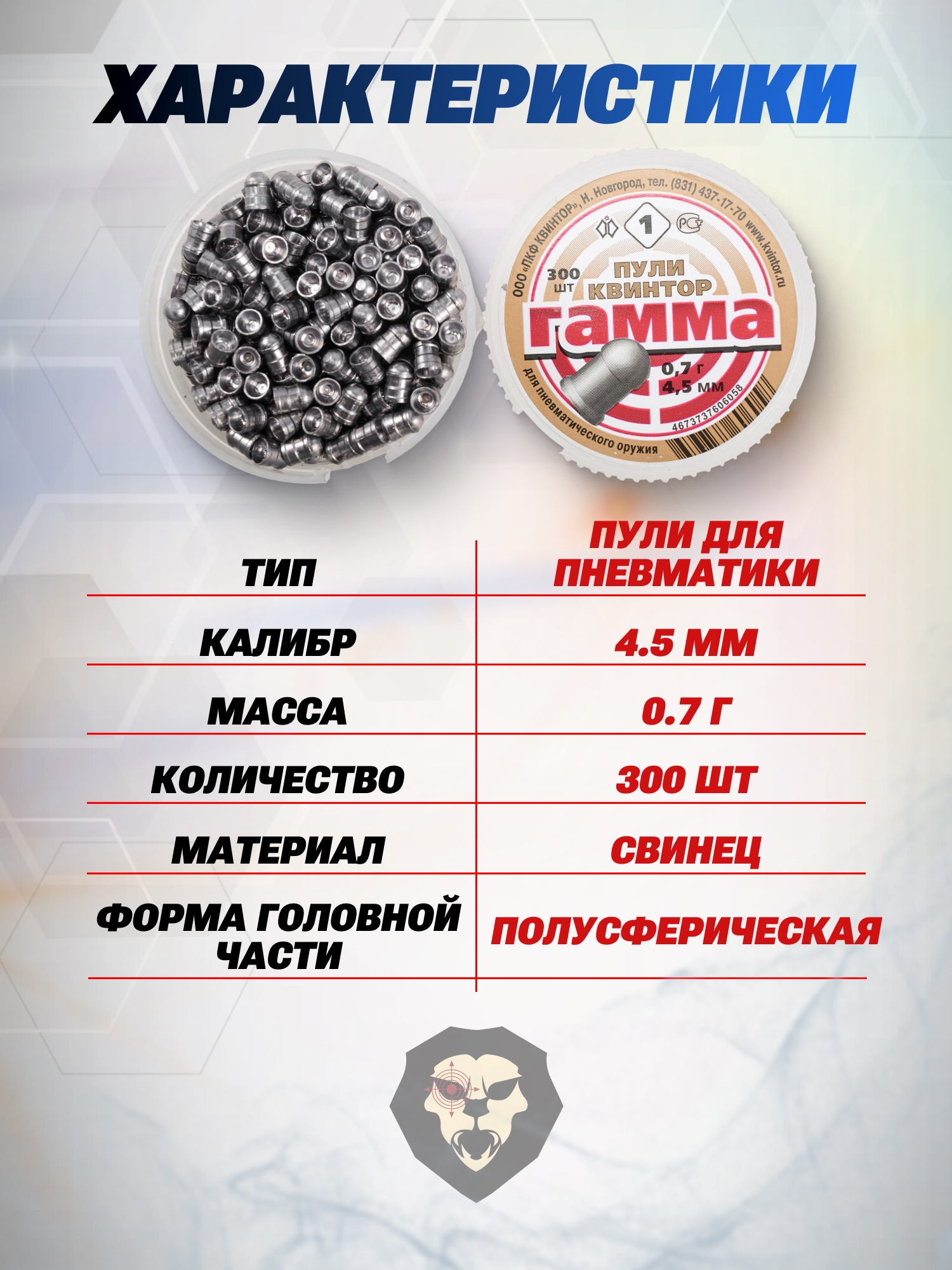 Пули пневматические Квинтор Гамма 4.5 мм (300 шт, 0.7 грамма) купить в интернет-магазине Popadiv10.