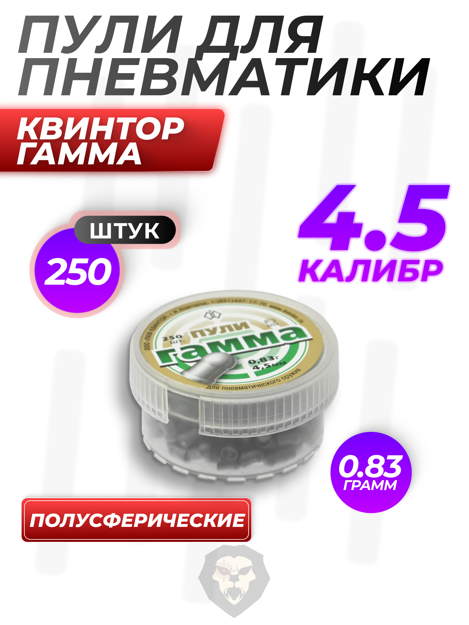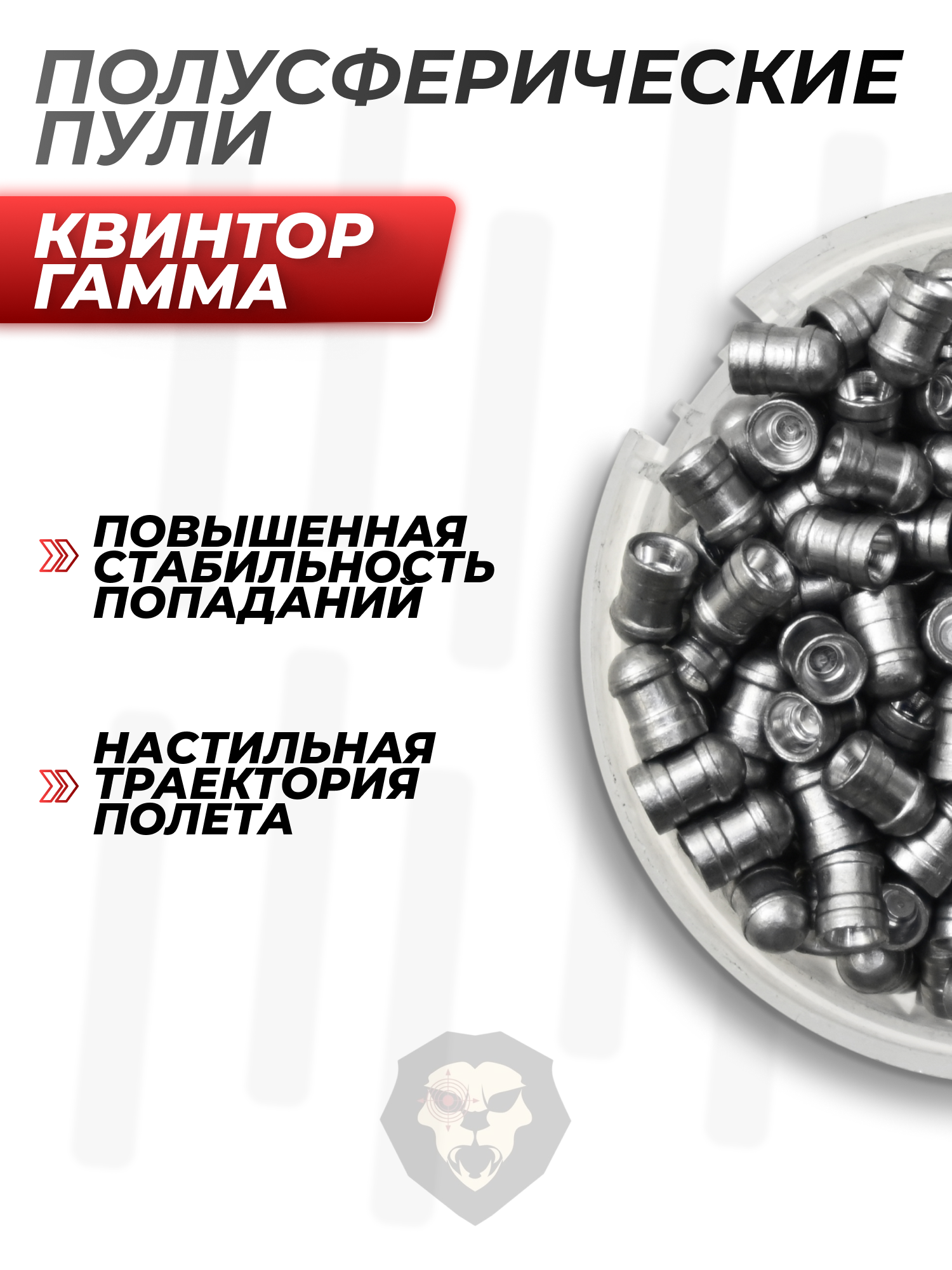 Российская компания Квинтор поставляет на рынок полусферические пневматические пули Квинтор Гамма, обладающие весом 0.83 грамма. Боеприпасы с формой головной части в виде полусферы характеризуются повышенными показателями аэродинамики при полете и пользуются популярностью при ведении огня из мощного пневматического оружия с калибром 4.5 миллиметра.