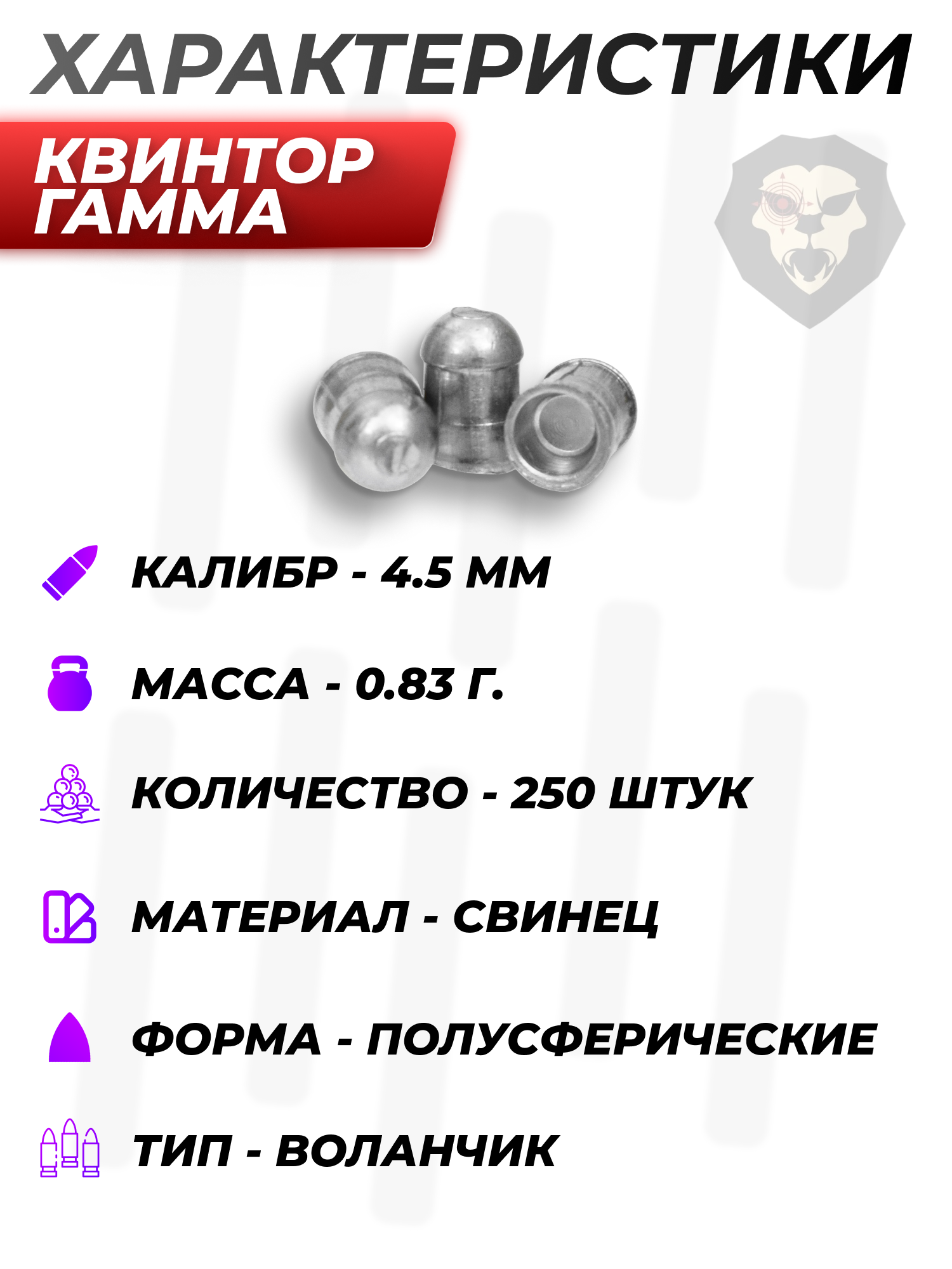 Пули пневматические Квинтор Гамма 4.5 мм (250 шт, 0.83 грамм) купить в интернет-магазине Popadiv10.