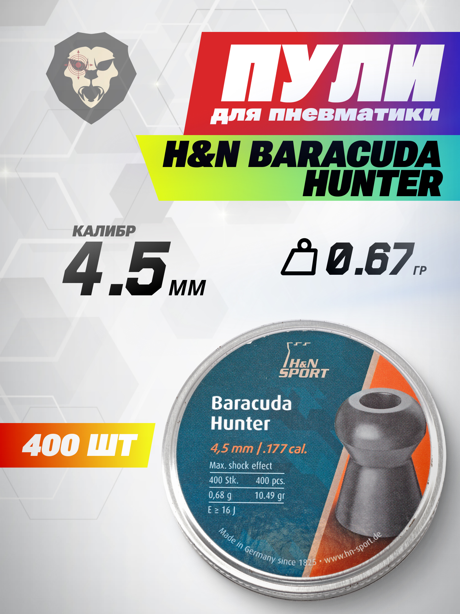 Пули пневматические H&N Baracuda Hunter 4.5 мм (400 шт, 0.68 г) купить в интернет-магазине Popadiv10.