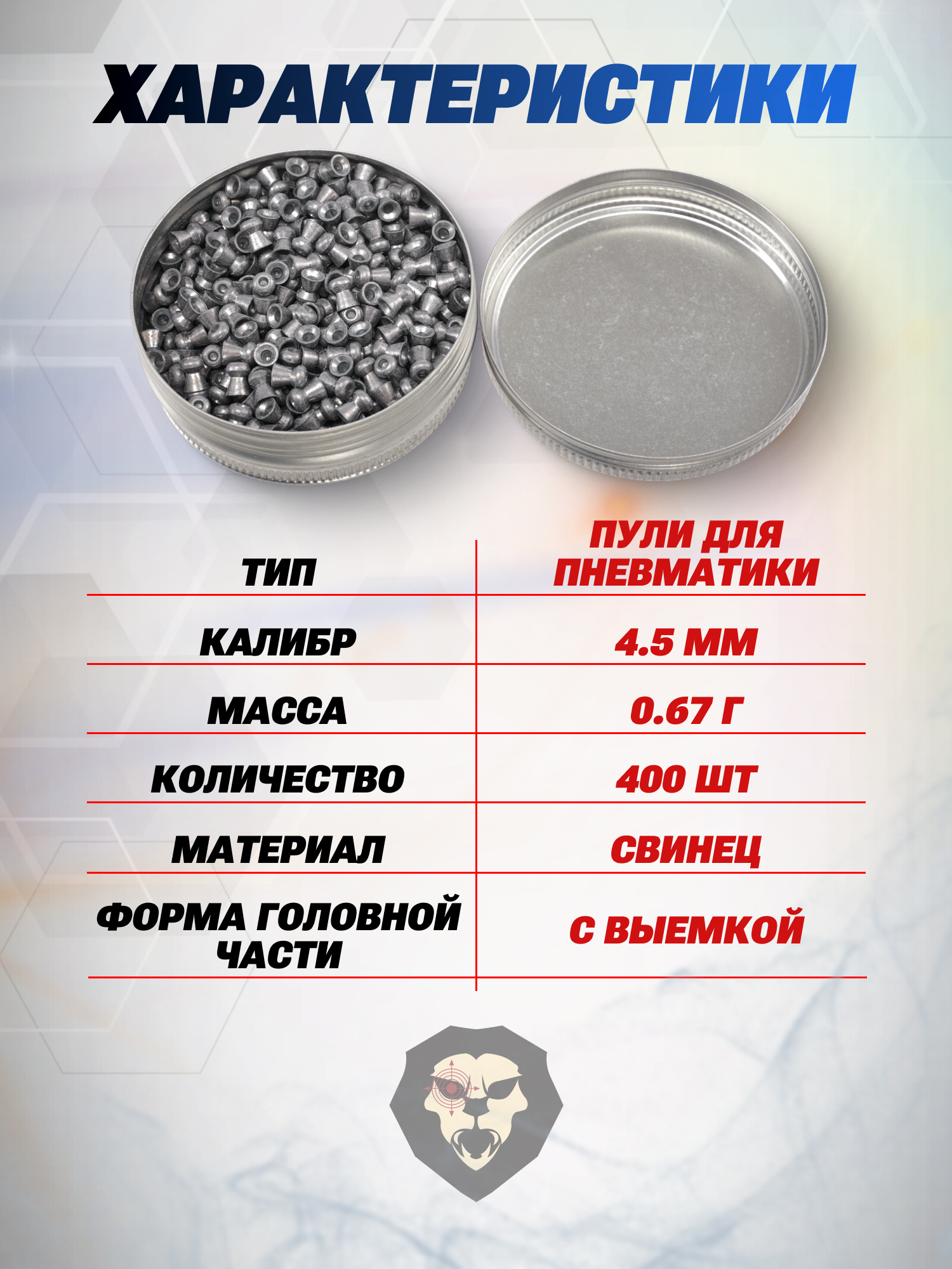 | Тип | Пули пневматические |