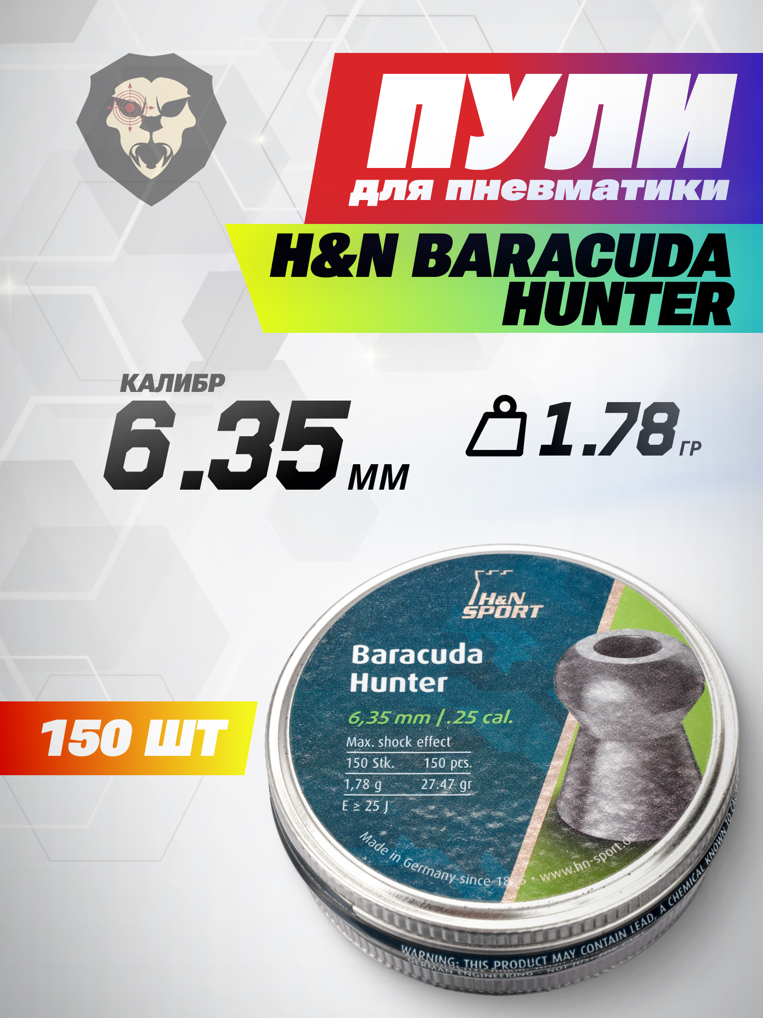 Пули пневматические H&N Baracuda Hunter 6.35 мм (150 шт, 1.78 грамма) купить в интернет-магазине Popadiv10.