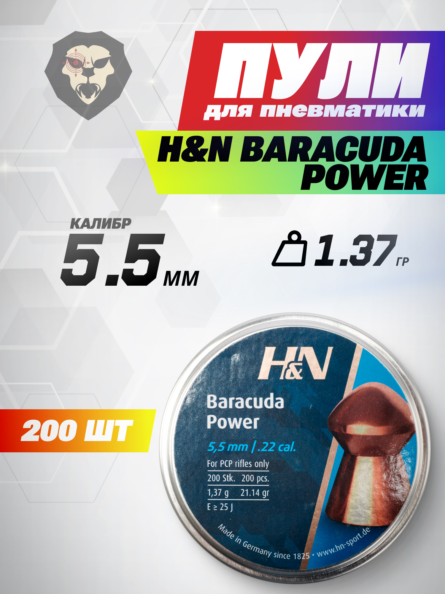 Пули пневматические H&N Baracuda Power 5.5 мм (200 шт, 1.37 г) купить в интернет-магазине Popadiv10.